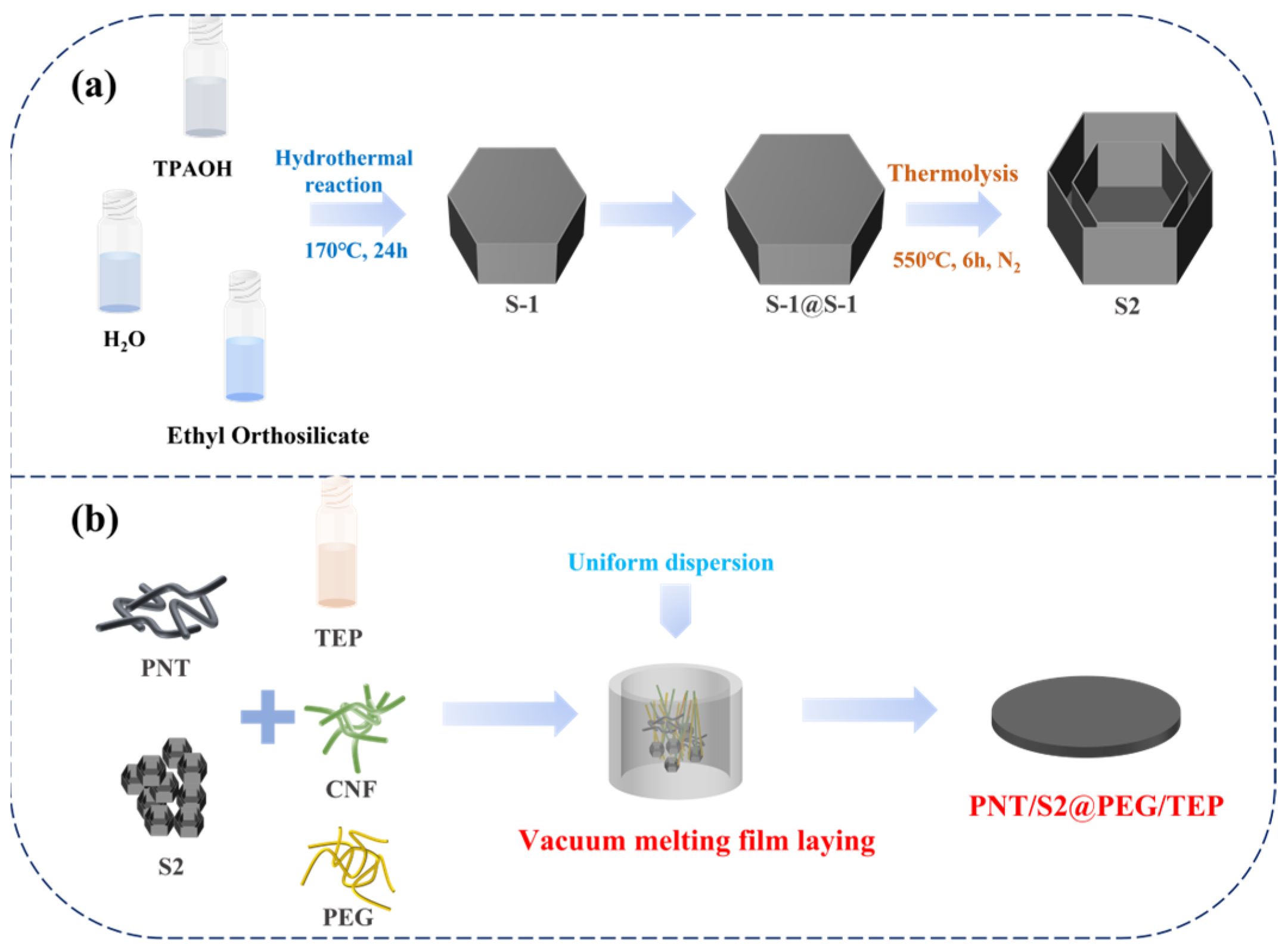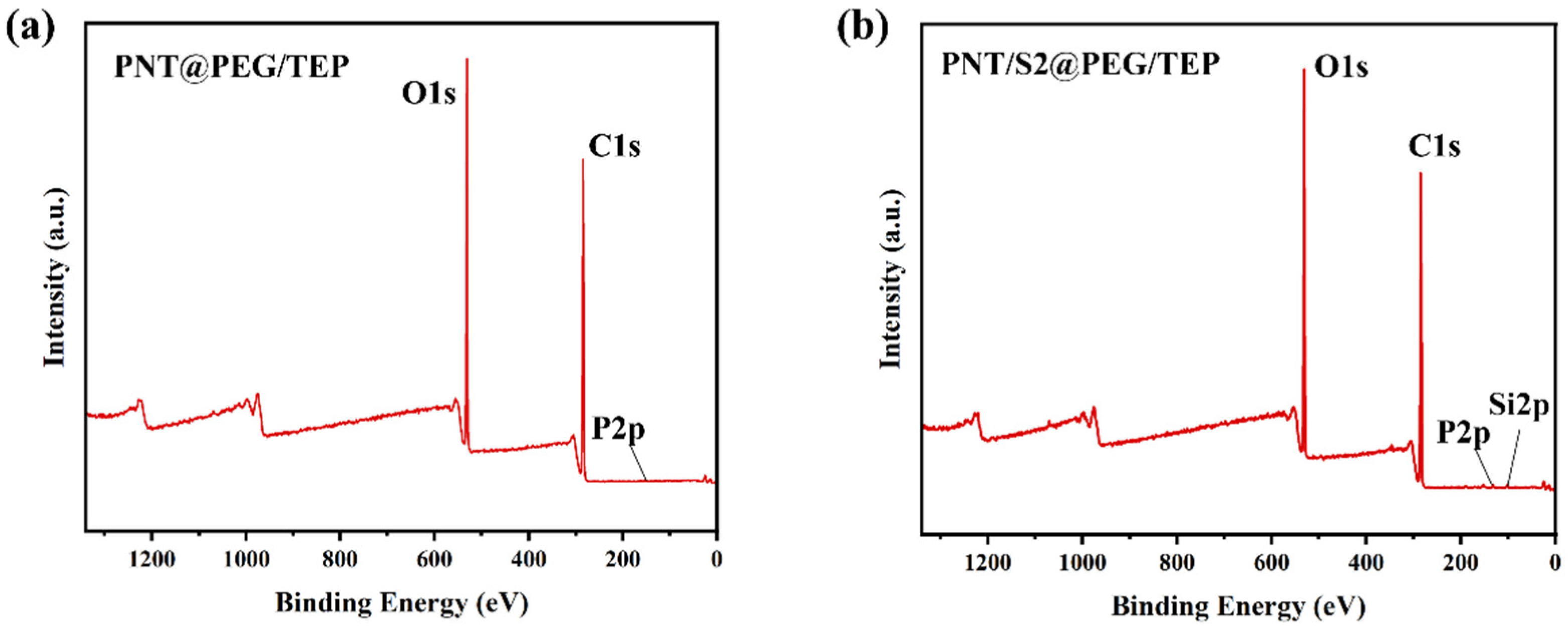 2.3. Preparation of PNT/S2@PEG/TEP and PNT@PEG/TEP