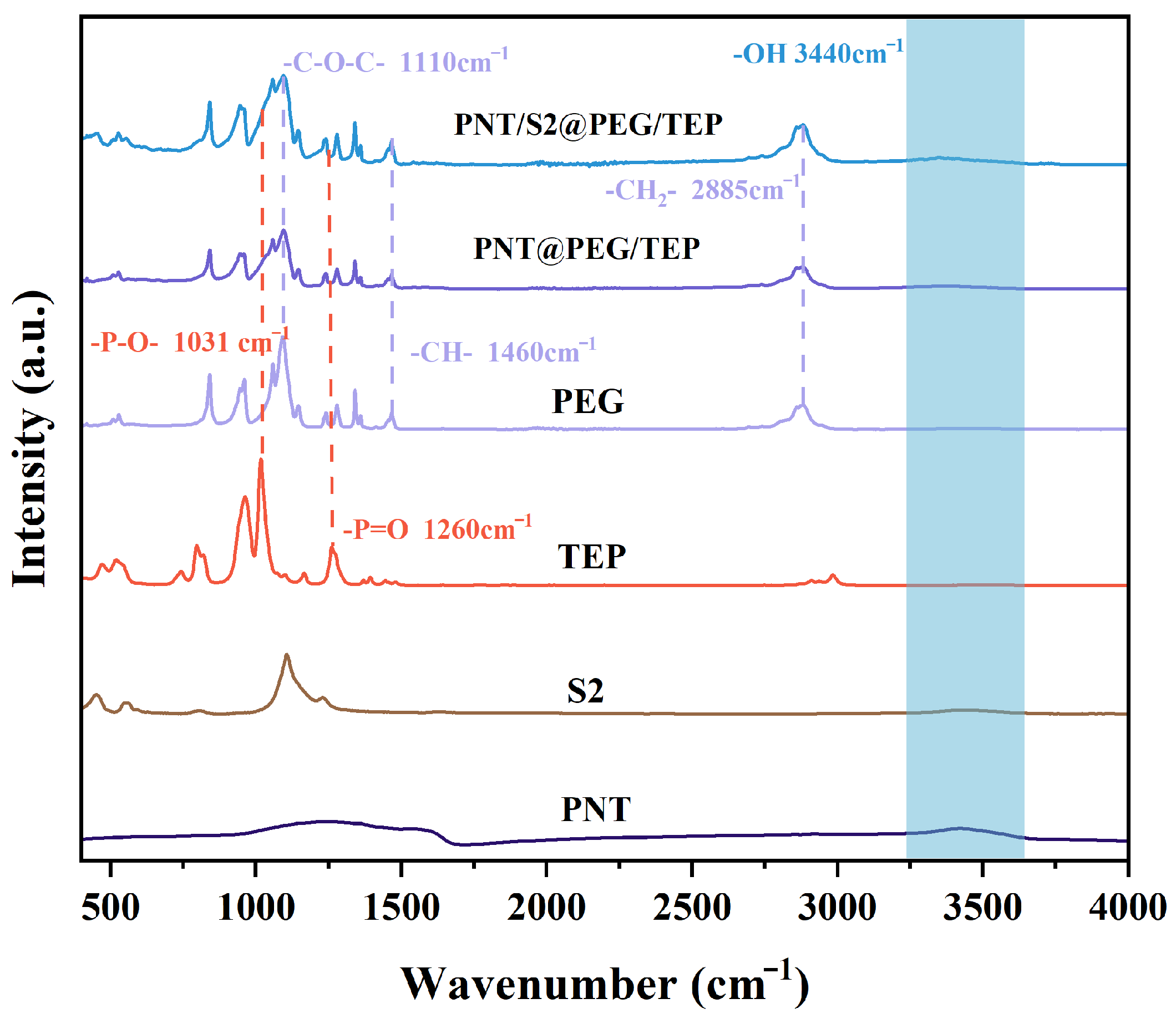 3.2. Structure Analysis of PNT/S2@PEG/TEP and PNT@PEG/TEP Composites Films
