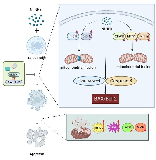 APA StyleQiao, L., Tong, Z., Xu, Y., Guan, C., Liang, G., & Kong, L. (2026). Promoting Drp1-Mediated Mitochondrial Division in Nickel Nanoparticles-Induced Reproductive Toxicity in GC-2 Cells. Nanomaterials, 16(1), 34. https://doi.org/10.3390/nano16010034