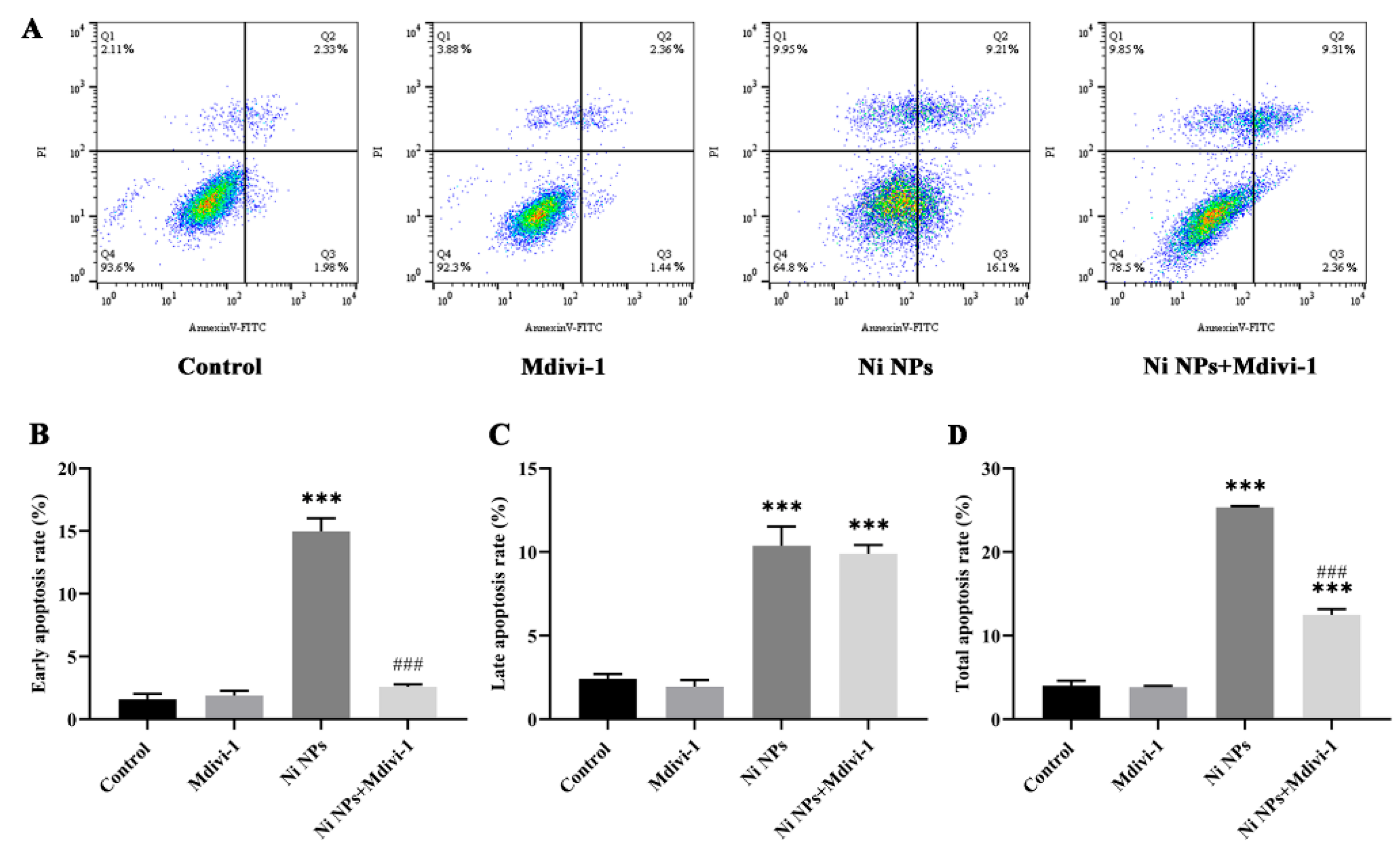 3.2.2. Effect of Mdivi-1 on Cell Apoptosis Caused by Ni NPs