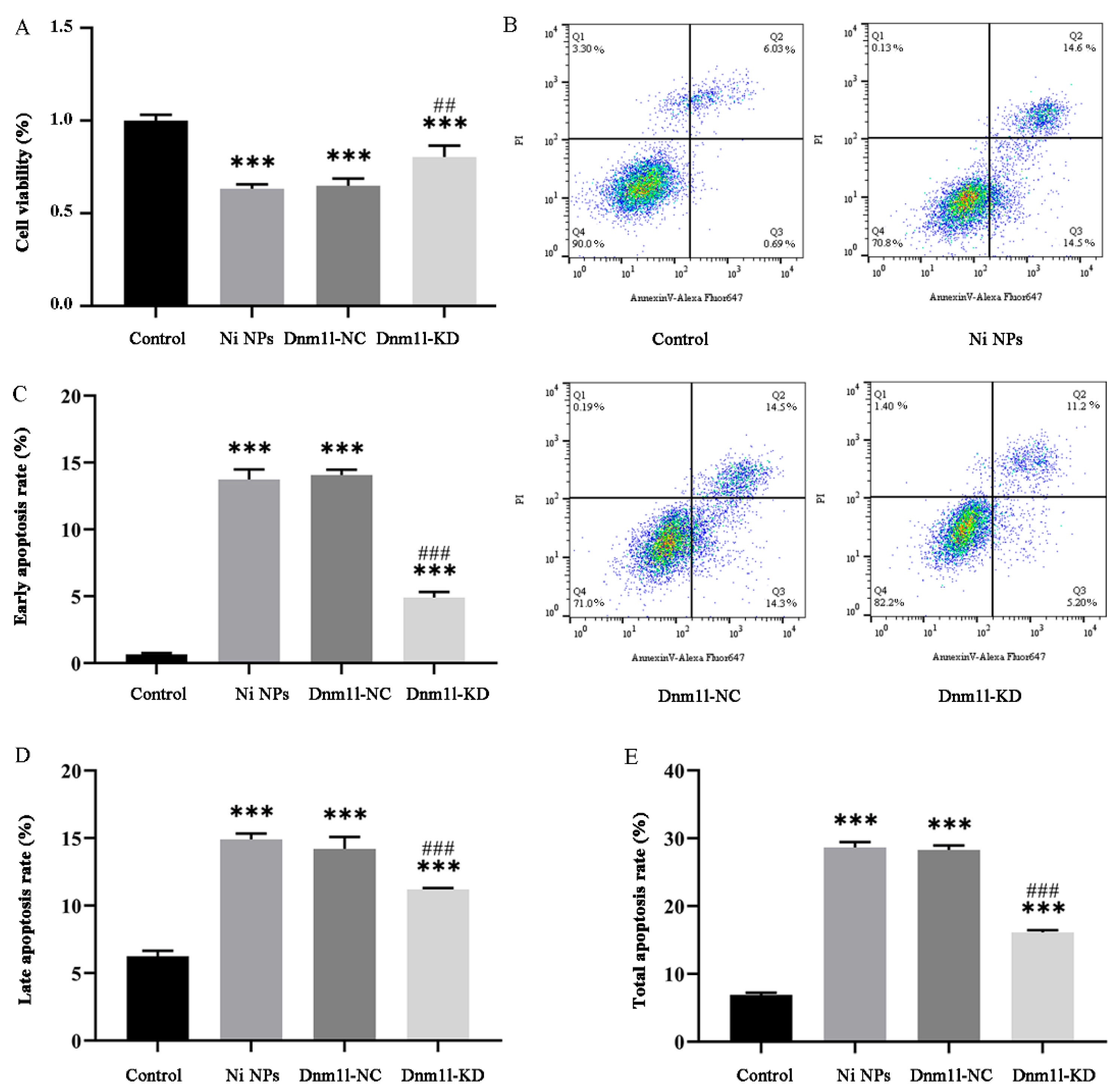 3.3.2. Effects of Low Expression of Dnm1l on the Cytotoxicity Caused by Ni NPs