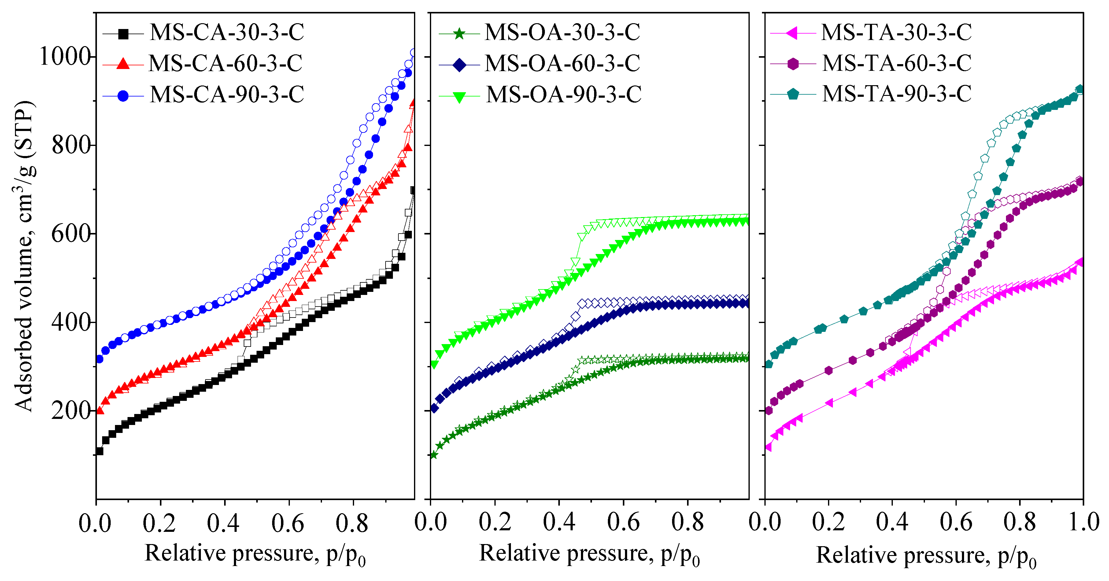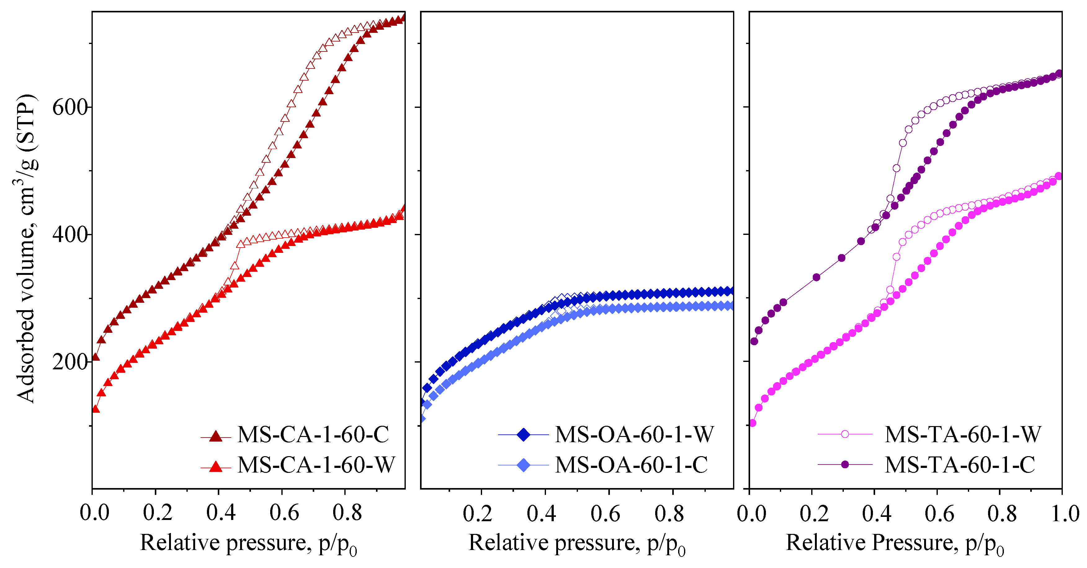 - Thommes, M.; Kaneko, K.; Neimark, A.V.; Olivier, J.P.; Rodriguez-Reinoso, F.; Rouquerol, J.; Sing, K.S.W. Physisorption of Gases, with Special Reference to the Evaluation of Surface Area and Pore Size Distribution (IUPAC Technical Report). Pure Appl. Chem. 2015, 87, 1051–1069. [Google Scholar] [CrossRef]