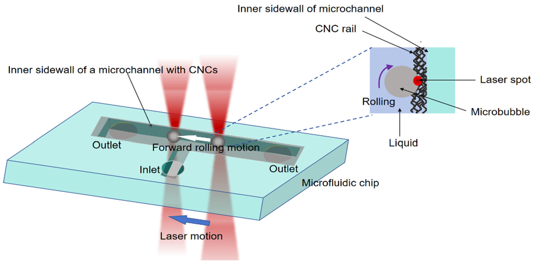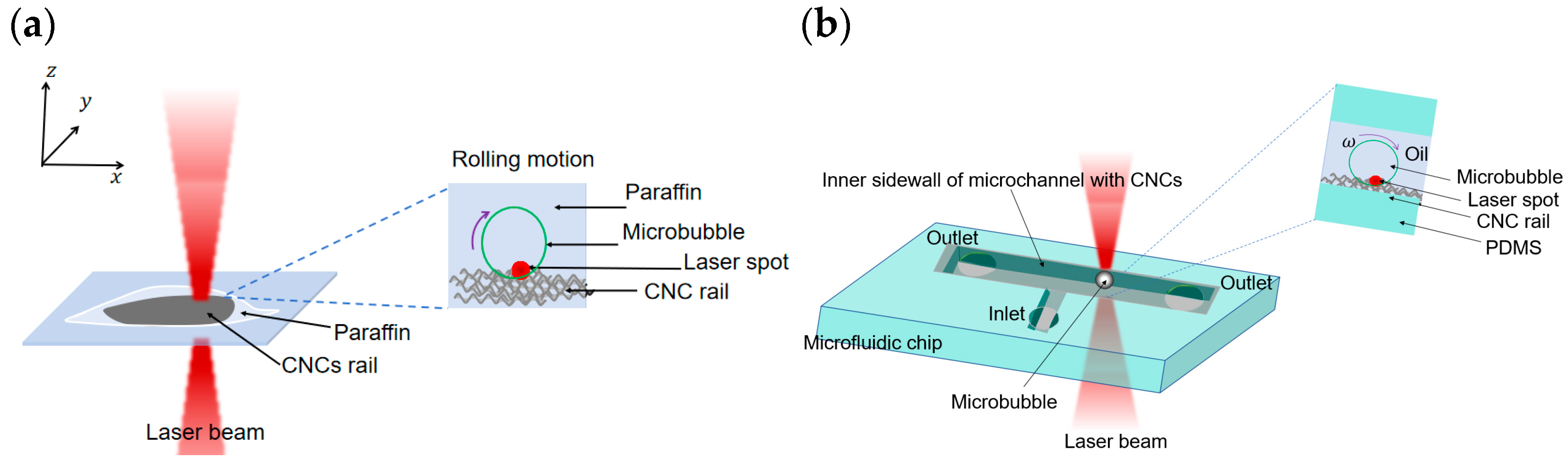 3.1. Laser-Controlled Microbubble Roiling Motion on CNC Rails