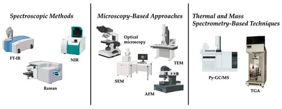 Thermal degradation and mass spectrometry-based techniques represent another important category of methods, primarily used for chemical identification and quantification of polymer mass. Among these, pyrolysis gas chromatography coupled to mass spectrometry (Py-GC/MS) is the most established. In this technique, samples are thermally decomposed under inert conditions, producing volatile degradation products that are separated chromatographically and then identified via mass spectrometry [19]. Each polymer type yields a characteristic pyrolytic fingerprint, enabling precise identification and quantification [19]. Py-GC/MS has proven invaluable for analyzing sediments, sewage sludge, and biological tissues where particle isolation is difficult [20]. However, as a destructive method, it eliminates any possibility of morphological analysis, providing no information about particle size or shape [20]. Thermogravimetric analysis (TGA) measures mass loss as a MNP sample is heated. Different polymers decompose at characteristic temperatures, and when coupled with FTIR or MS for evolved gas analysis, TGA can yield additional insights into polymer composition [21]. However, the overlap in decomposition temperatures between polymers reduces specificity, particularly in mixed samples [21]. Figure 1 summarizes the conventional analytical methods for micro and nano plastics detection.