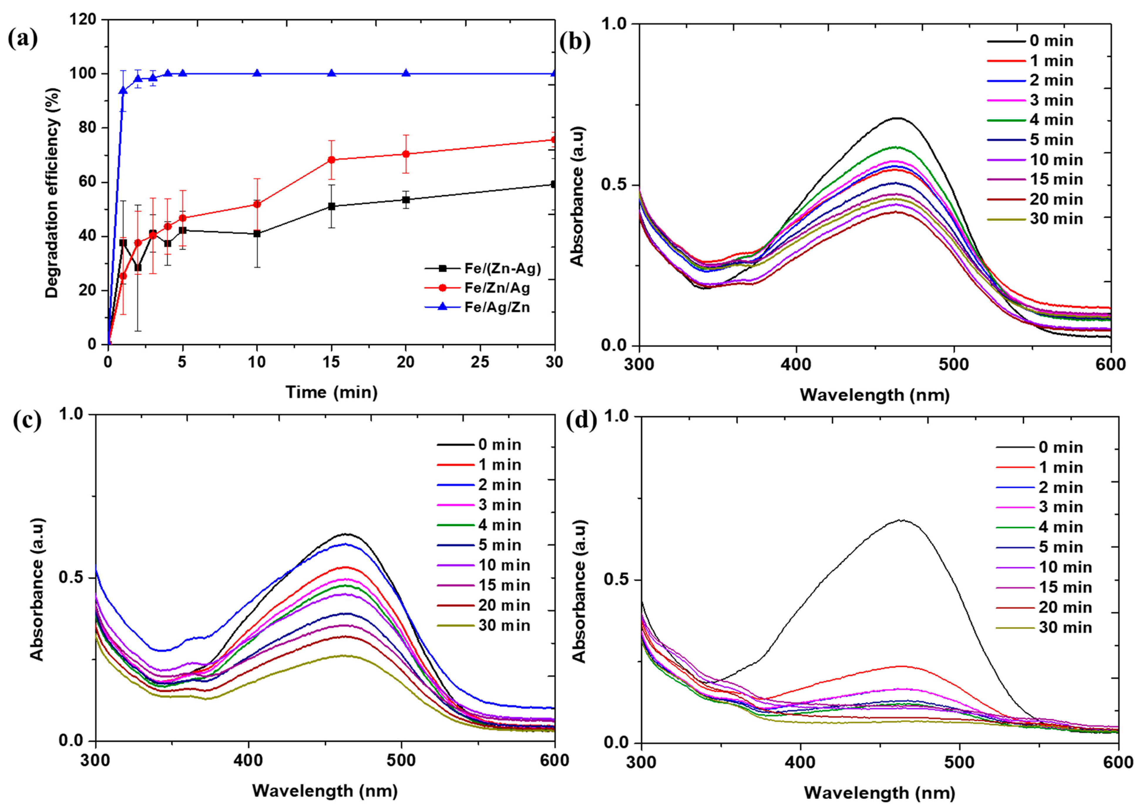 3.2. Effect of Metal Addition Sequence on Methyl Orange Degradation