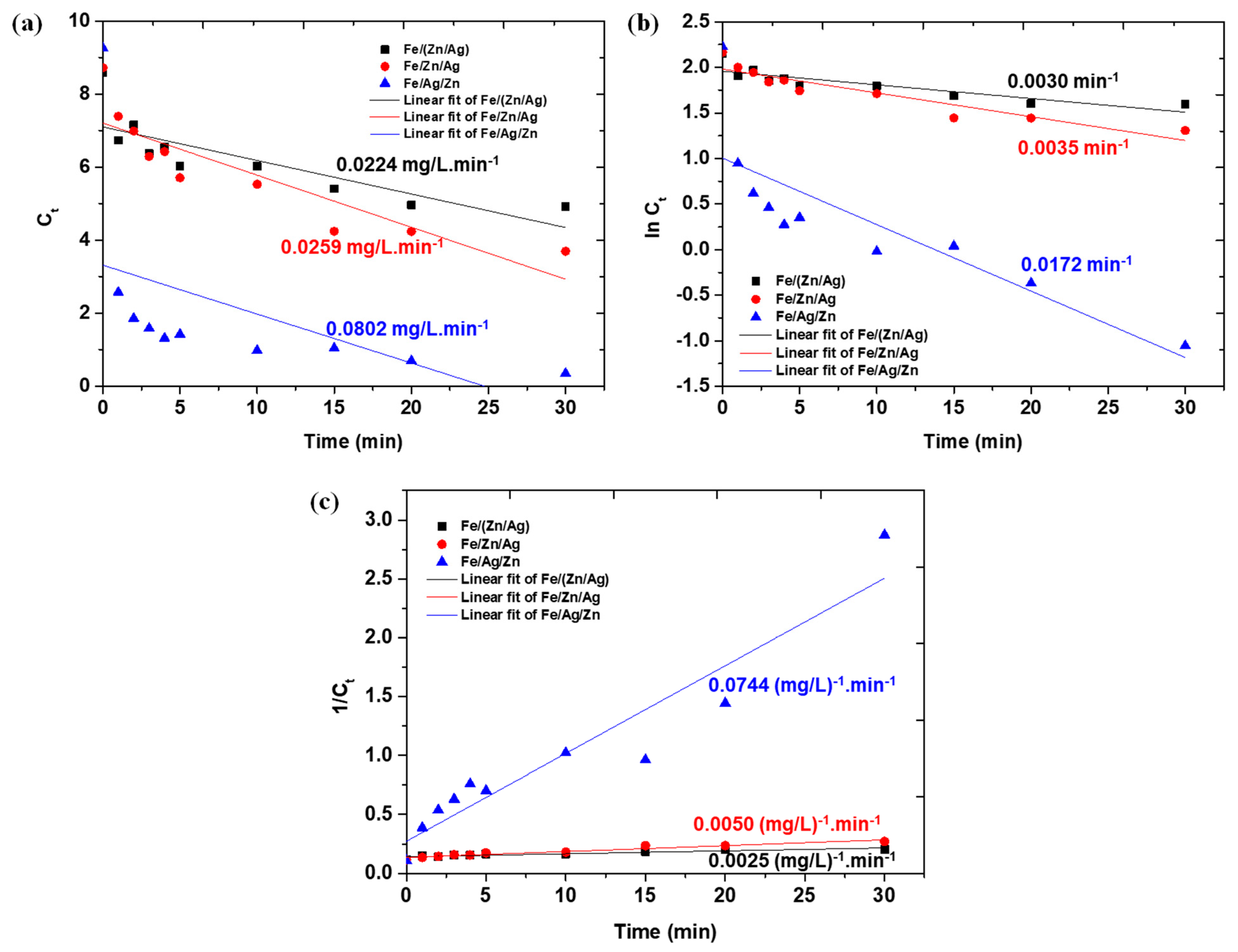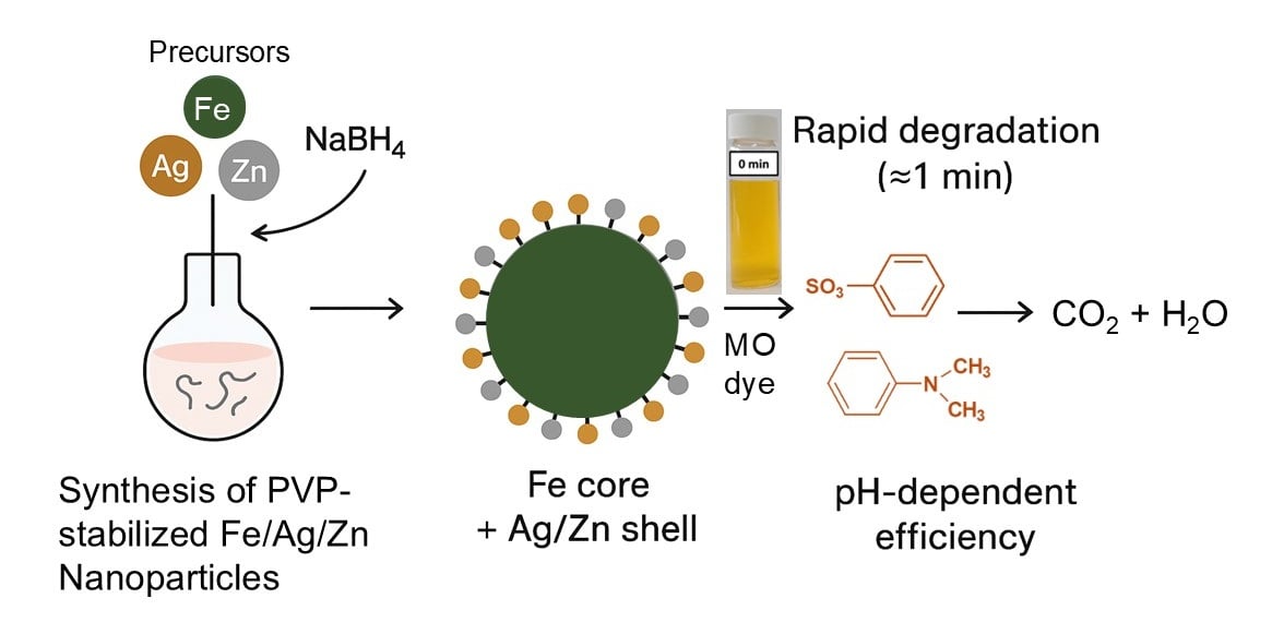 Kgatle M, Khoabane K, Mphuthi N, Ndlovu G, Moloto N. Catalytic Degradation of Methyl Orange Using Fe/Ag/Zn Trimetallic Nanoparticles. Nanomaterials. 2026; 16(1):60. https://doi.org/10.3390/nano16010060