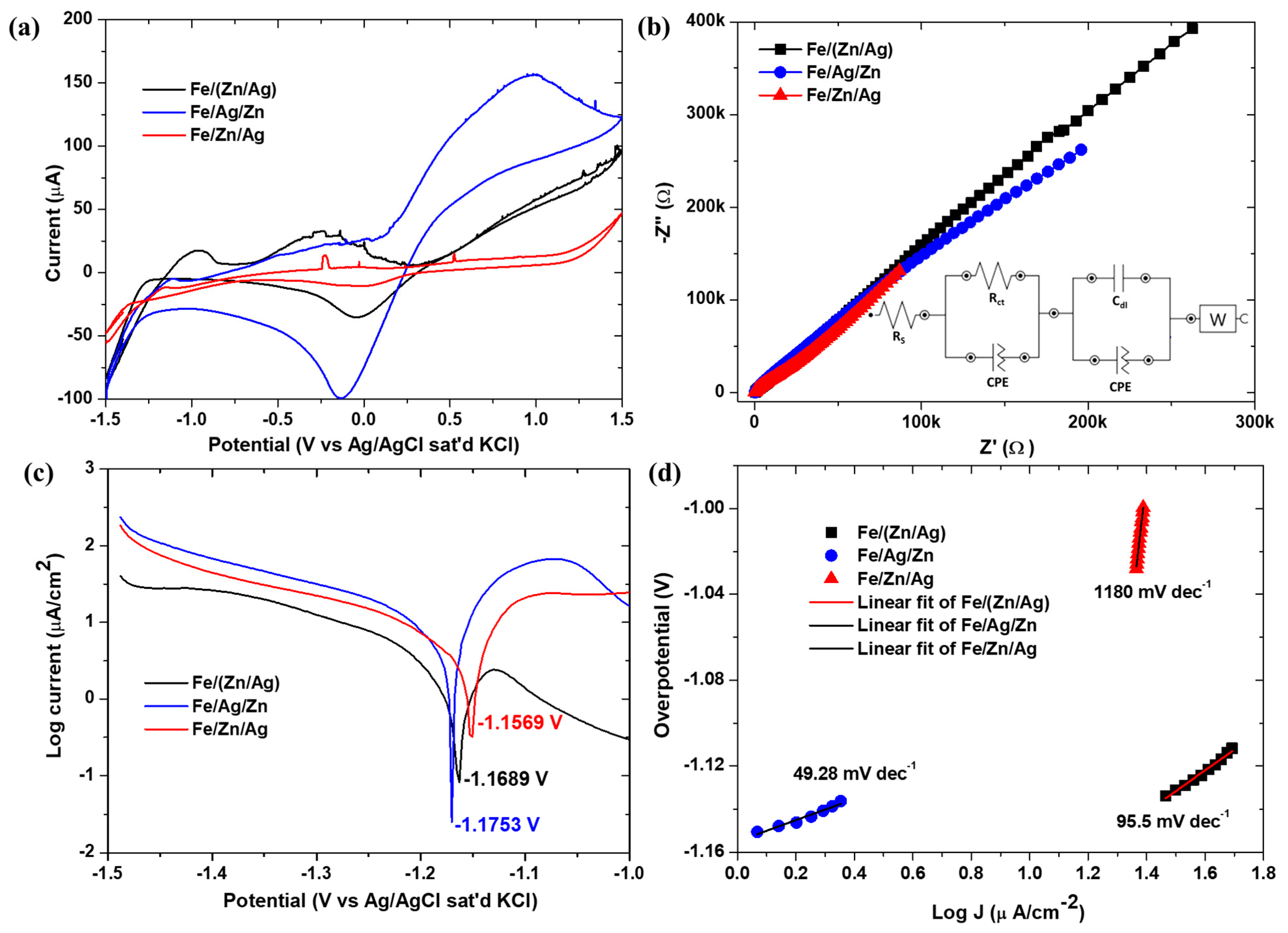 | Fe/Zn/Ag | 46.73 | 4.09 × 10−5 | 1.7534 | 0.3507 | 37.0288 | 1.78–25.07 | 0.06–0.13 | 10.37–42.25 |