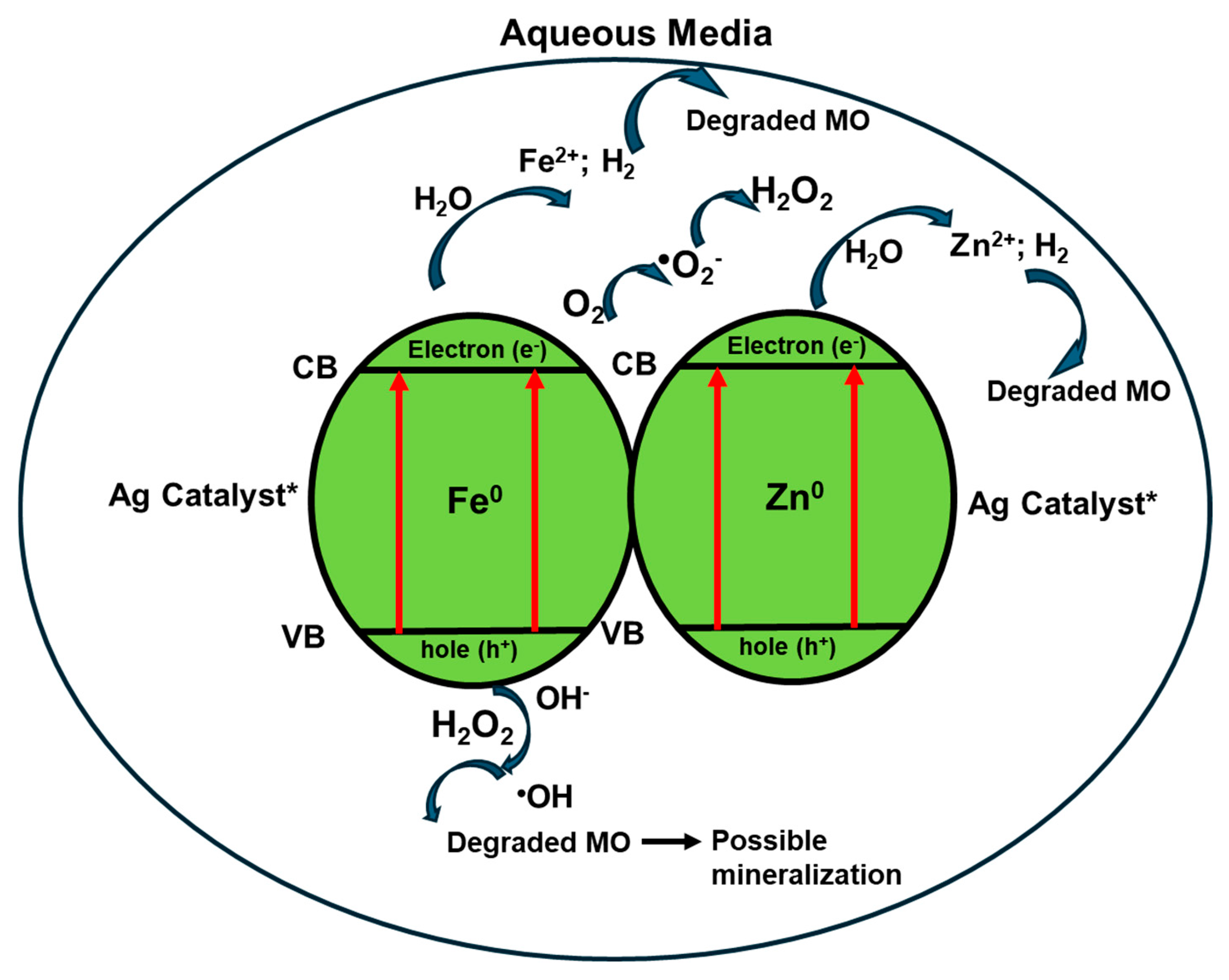 - Yildiz, B.; Şener, E.; Hanay, Ö. The Role of Second Metal on the Catalytic in-Situ Generation of H2O2 by Fe/Ni Bimetallic Nanoparticles: Degradation Studies of Metronidazole Antibiotic. Yildiz Iran J. Chem. Chem. Eng. 2024, 43, 1457–1469. [Google Scholar] [CrossRef]