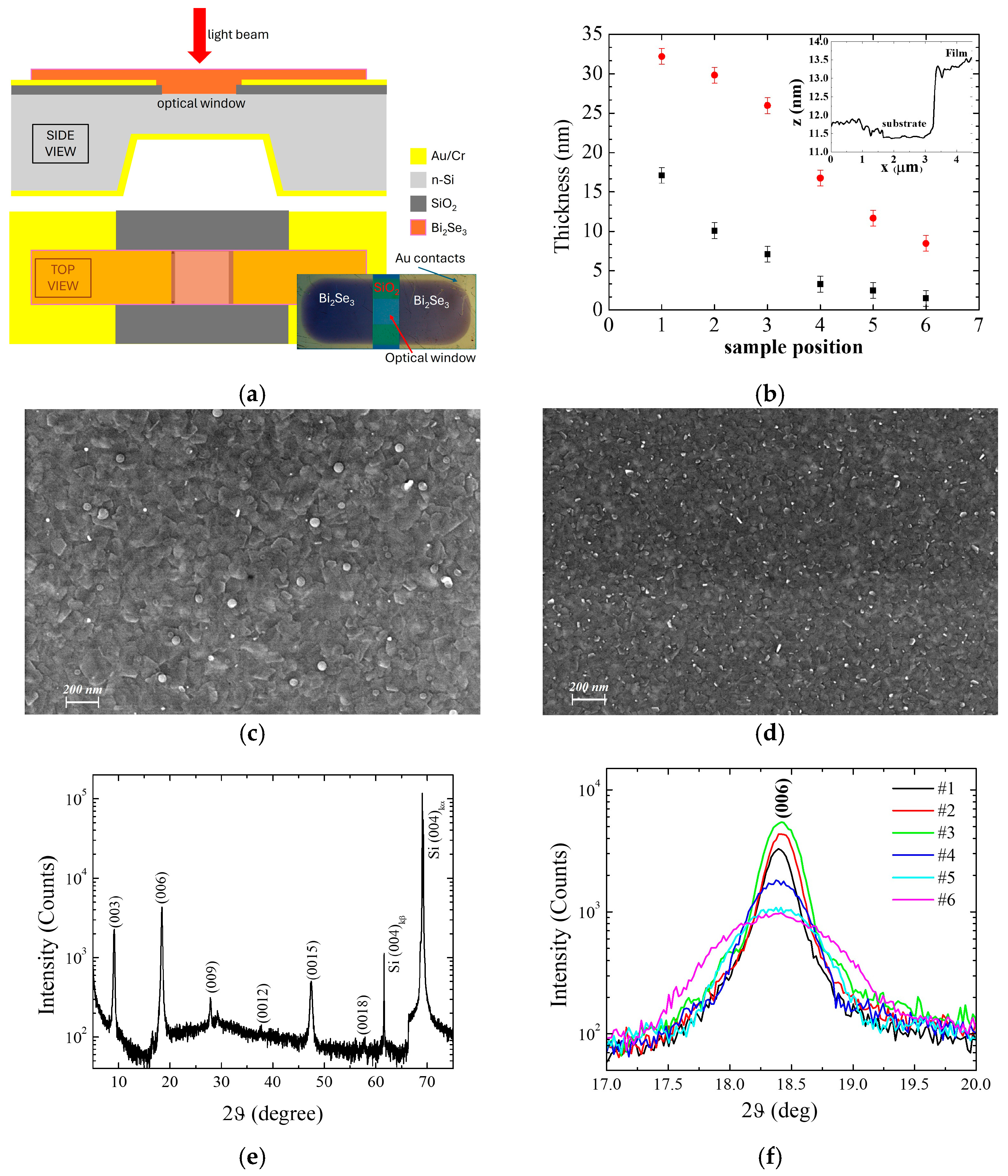 - Salvato, M.; Scagliotti, M.; De Crescenzi, M.; Castrucci, P.; De Matteis, F.; Crivellari, M.; Pelli Cresi, S.; Catone, D.; Bauch, T.; Lombardi, F. Stoichiometric Bi2Se3 topological insulator ultrathin films obtained through a new fabrication process for optoelectronic applications. Nanoscale 2020, 12, 12405–12415. [Google Scholar] [CrossRef]