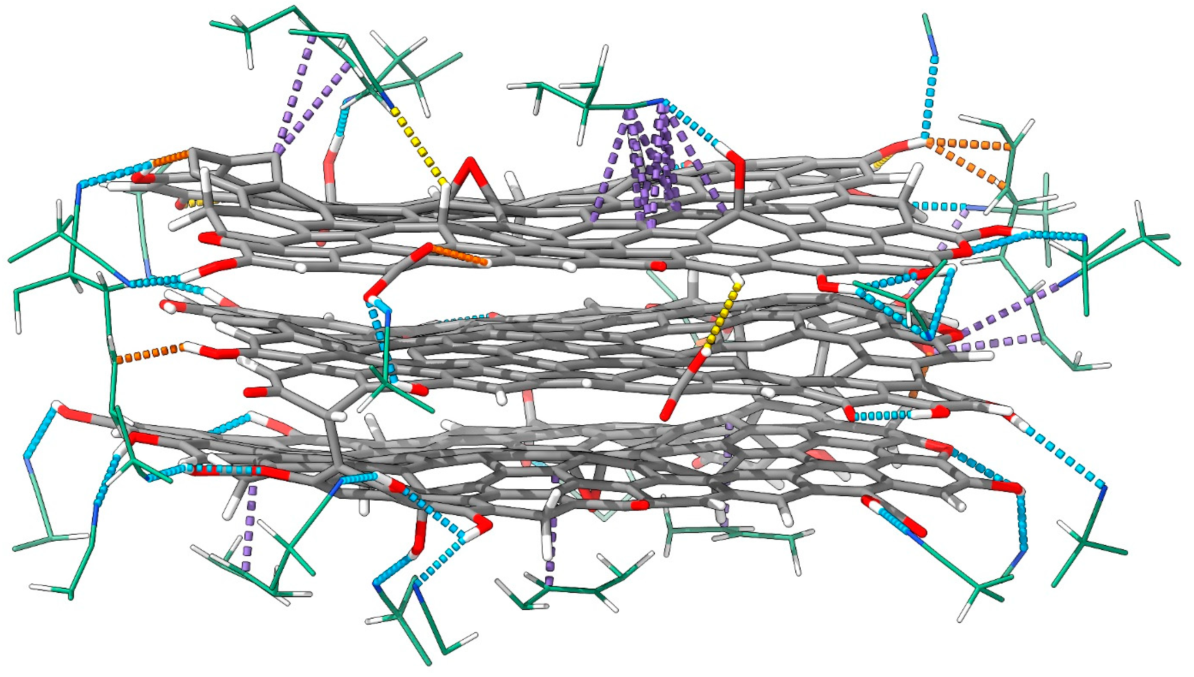 - Mostly acceptors in every case: epoxy O, carboxyl carbonyl O, carboxyl hydroxyl O.