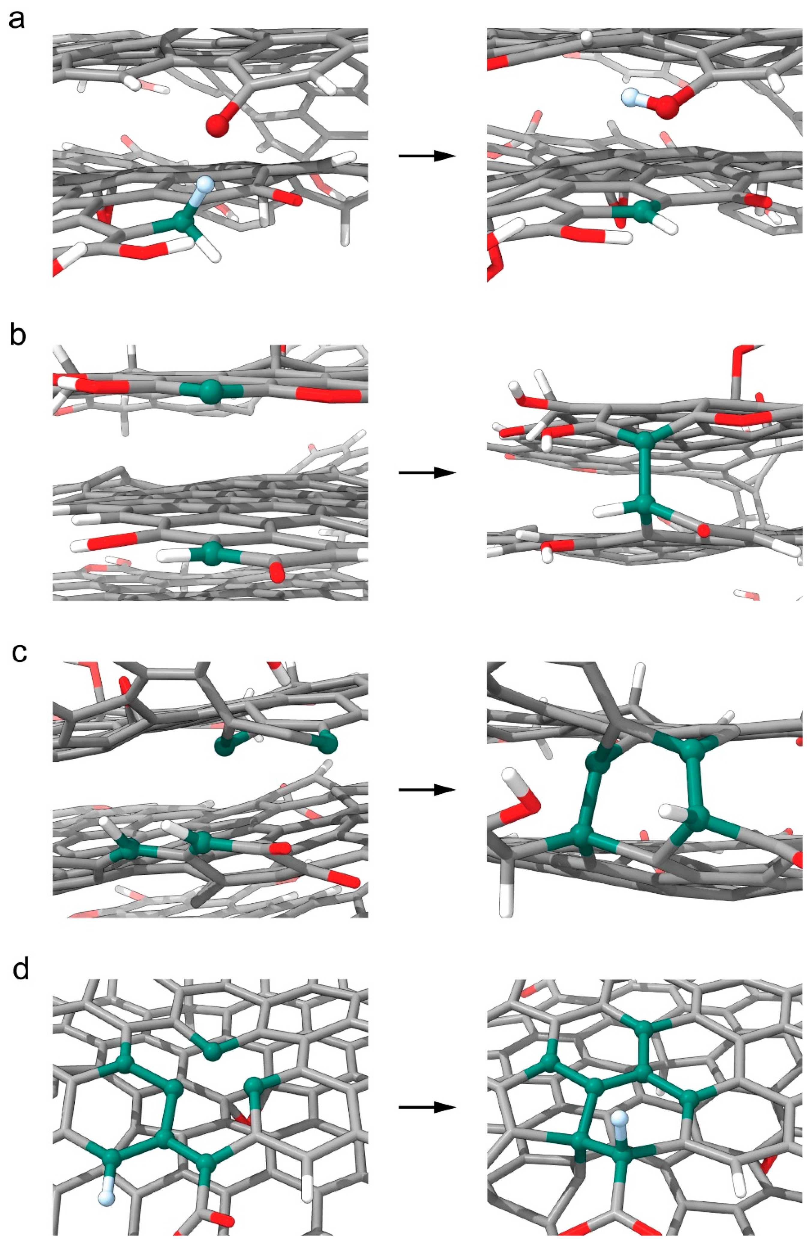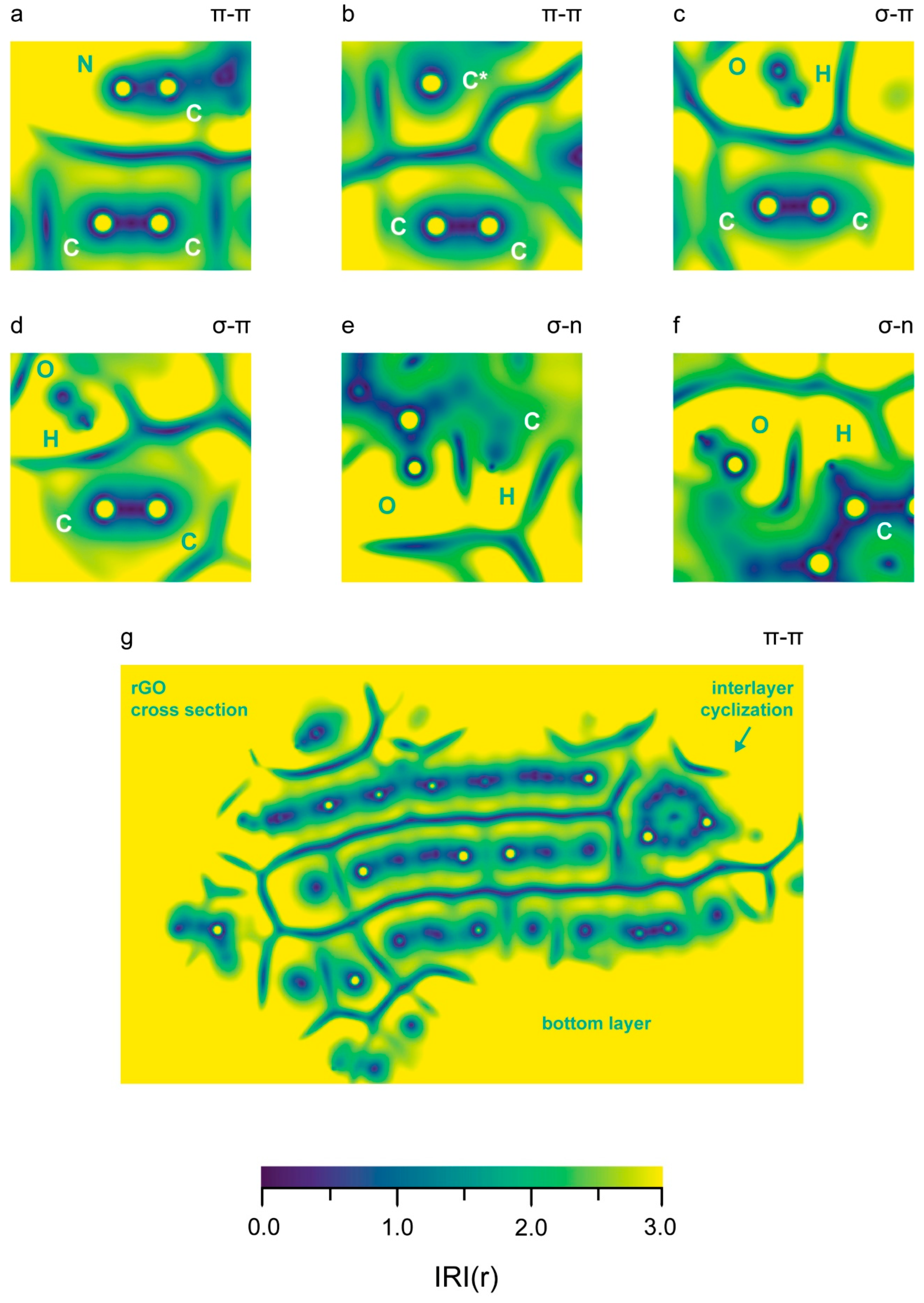- An arbitrary number of couples of stacked 6-atomic π–π rings are selected from neighboring rGO layers. Our selection was of 6 such couples for each interlayer distance.