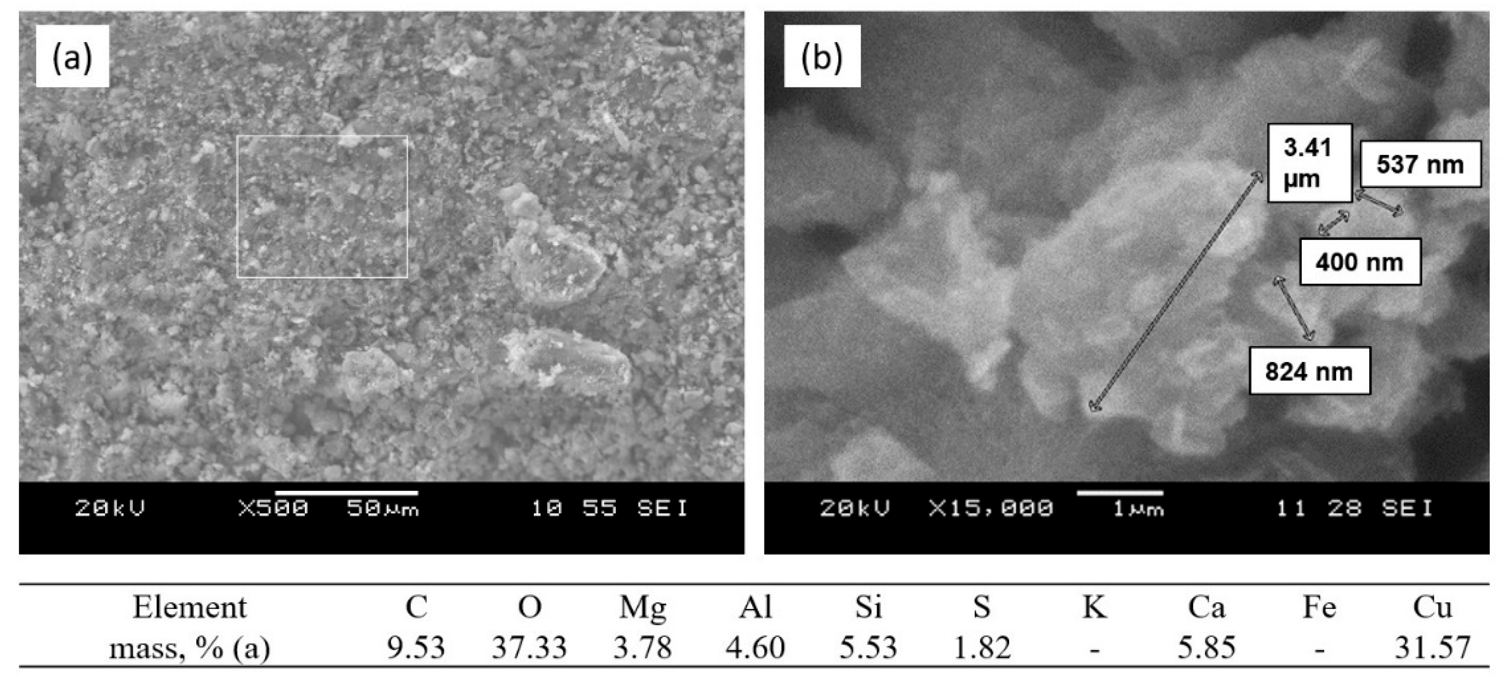 - Morozova, A.G.; Lonzinger, T.M.; Skotnikov, V.A.; Mikhailov, G.G.; Kapelyushin, Y.; Khandaker, M.U.; Alqahtani, A.; Bradley, D.A.; Sayyed, M.I.; Tishkevich, D.I.; et al. Insights into Sorption–Mineralization Mechanism for Sustainable Granular Composite of MgO-CaO-Al2O3-SiO2-CO2 Based on Nanosized Adsorption Centers and Its Effect on Aqueous Cu(II) Removal. Nanomaterials 2022, 12, 116. [Google Scholar] [CrossRef] [PubMed]