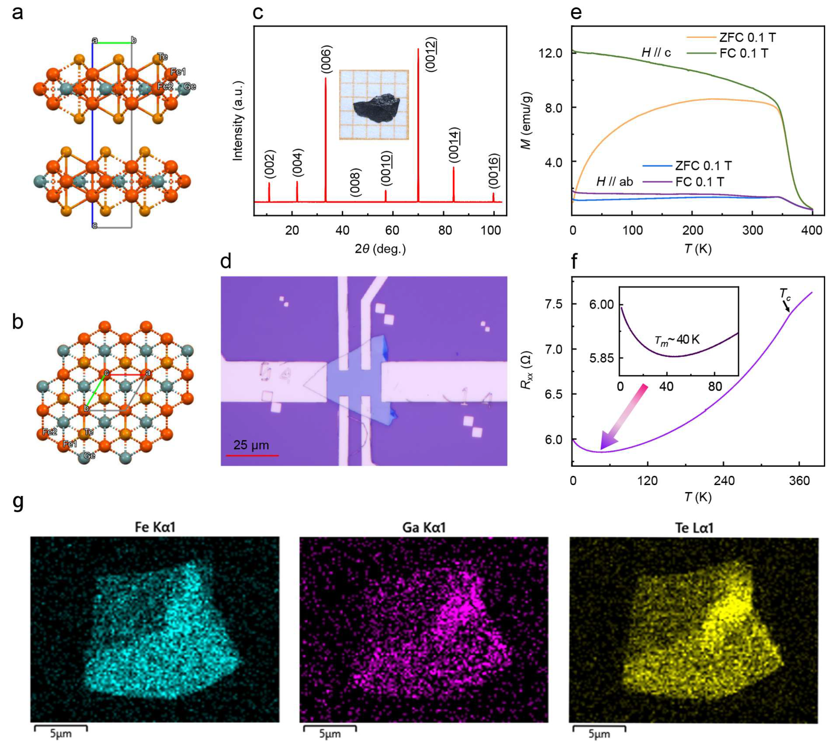 - Feng, H.L.; Li, Y.; Shi, Y.G.; Xie, H.Y.; Li, Y.Q.; Xu, Y. Resistance anomaly and linear magnetoresistance in thin flakes of itinerant ferromagnet Fe3GeTe2. Chin. Phys. Lett. 2022, 39, 077501. [Google Scholar] [CrossRef]