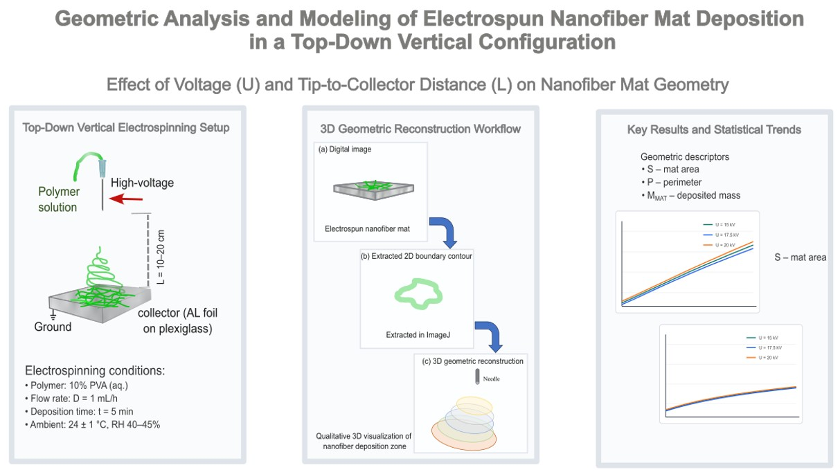 Neznakomova, M.; Dineff, P.; Shopov, M.; Nikolov, N.; Gospodinova, D. Geometric Analysis and Modeling of Electrospun Nanofiber Mat Deposition in a Top-Down Vertical Configuration. Nanomaterials 2026, 16, 126. https://doi.org/10.3390/nano16020126