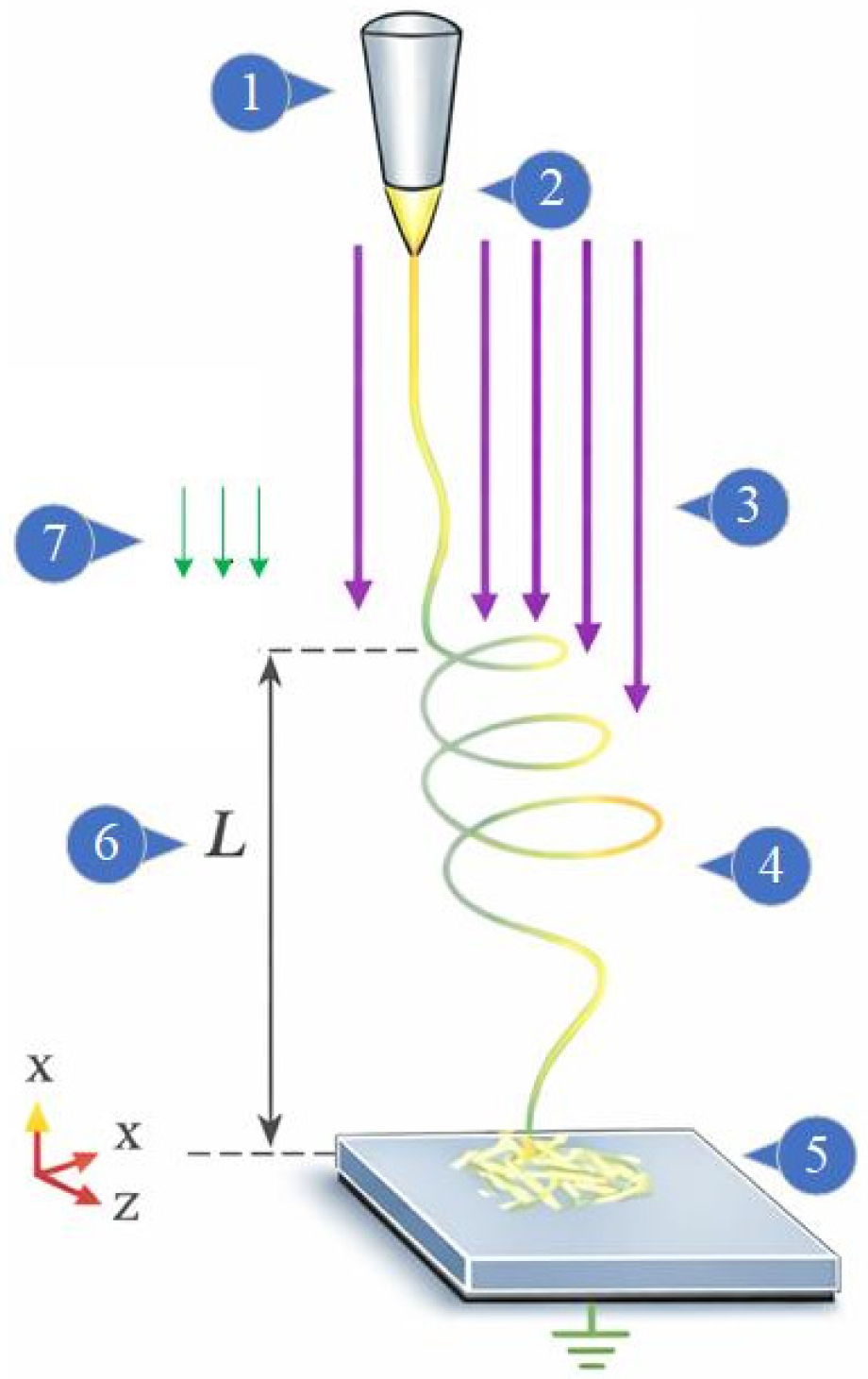 - Huang, Y.; Li, Y.; Zhang, Y.; Yu, H.; Tan, Z. Near-field electrospinning for 2D and 3D structuring: Fundamentals, methods, and applications. Mater. Today Adv. 2024, 21, 100461. [Google Scholar] [CrossRef]