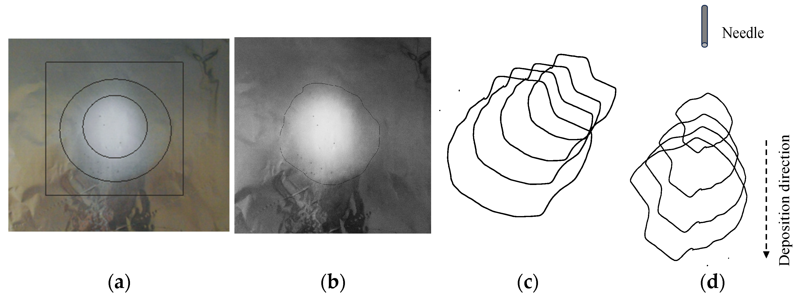- Singh, A.K.; Choubey, A.; Srivastava, R.K.; Bahga, S.S. Physics of moderately stretched electrified jets in electrohydrodynamic jet printing. Phys. Rev. E 2023, 107, 045103. [Google Scholar] [CrossRef]