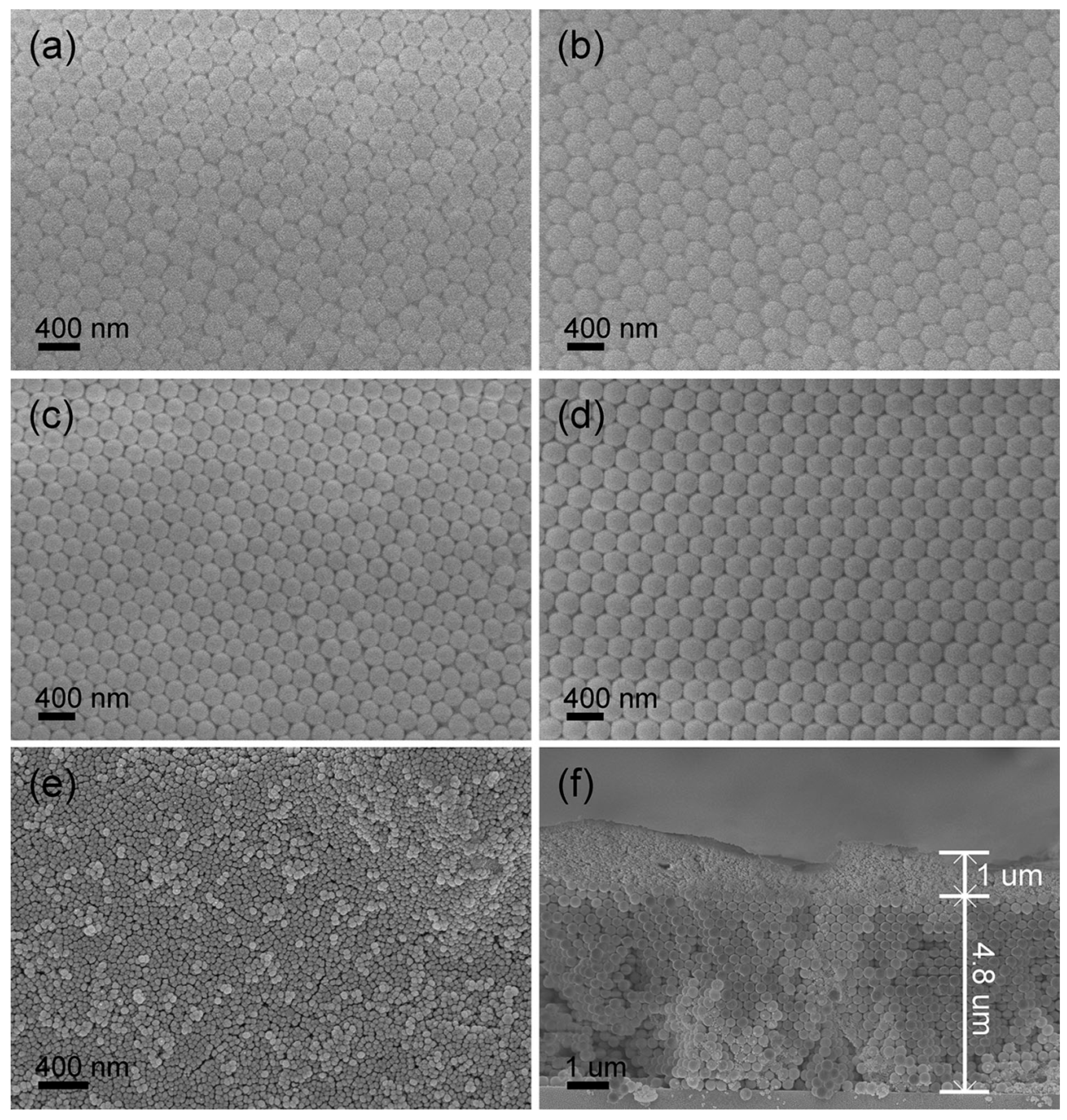 - Shi, Y.; Zhang, F.; Xu, J.; Zhou, K.; Chen, C.; Cheng, J.; Li, P. Upconversion fluorescence enhancement of NaYF4:Yb/Re nanoparticles by coupling with SiO2 opal photonic crystals. J. Mater. Sci. 2019, 54, 8461–8471. [Google Scholar]