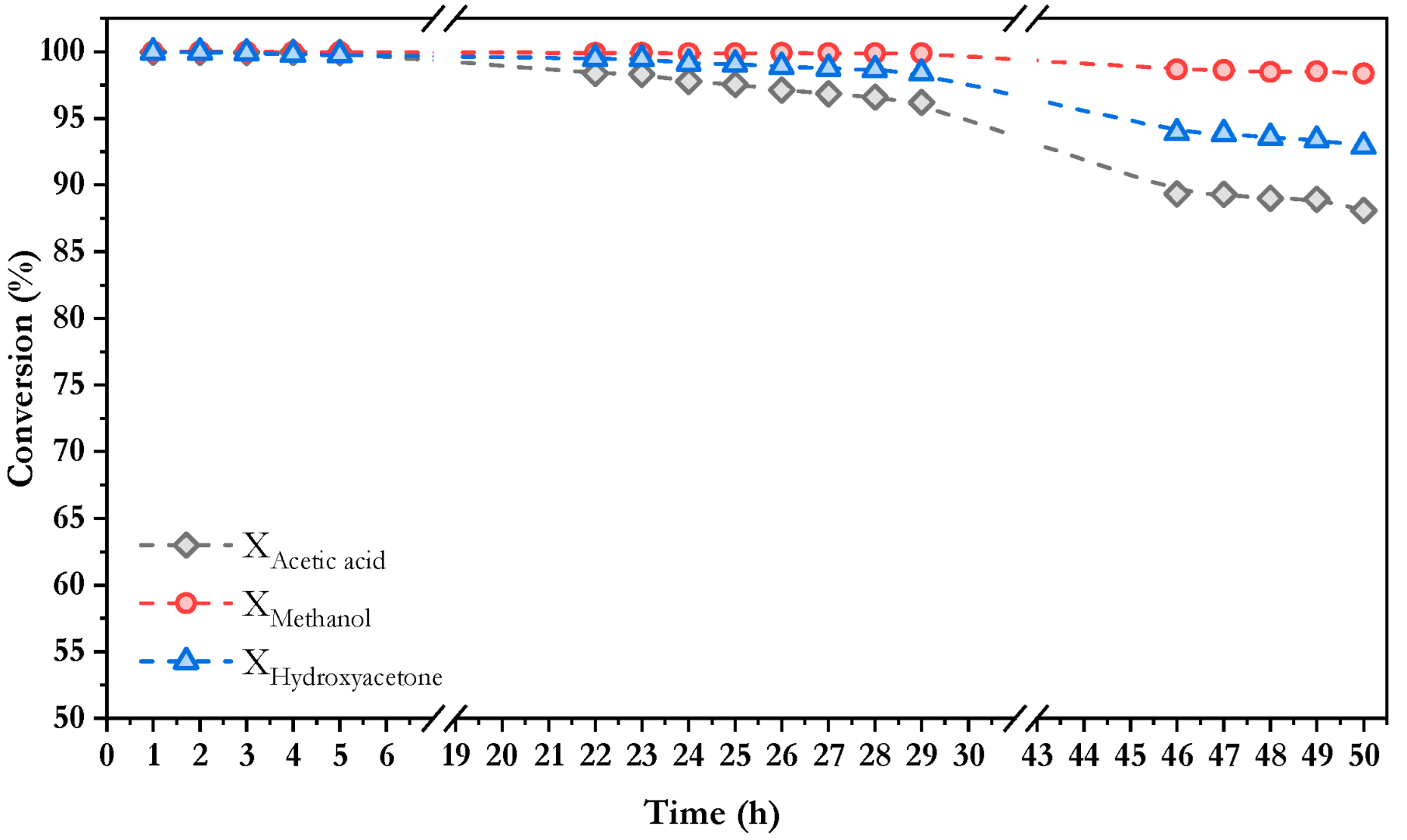 - Wang, J.; Jiang, Y.; Zhang, S.; Wang, Y.; Hu, S.; Xiang, J.; Gholizadeh, M.; Hu, X. Used Ni/KIT-6 as a Sacrificial Catalyst for Mitigating Coking in Lower-Layer Catalyst in Steam Reforming of Acetic Acid. Fuel 2024, 357, 130063. [Google Scholar] [CrossRef]