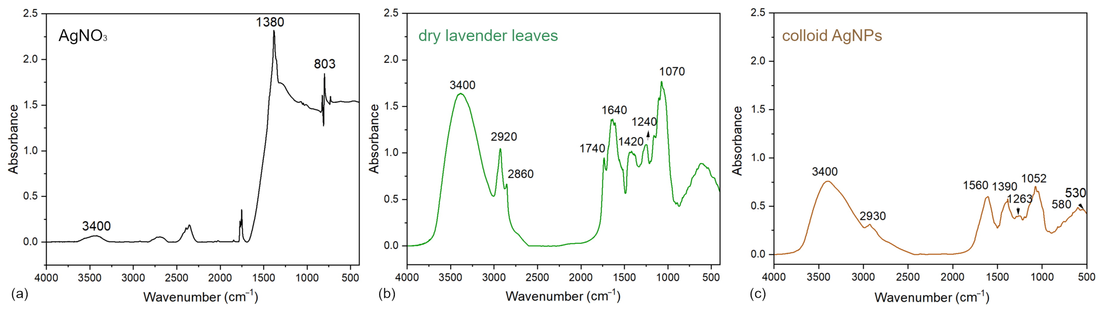3.1.1. FTIR Spectroscopy of Precursor, Extract, and Colloid