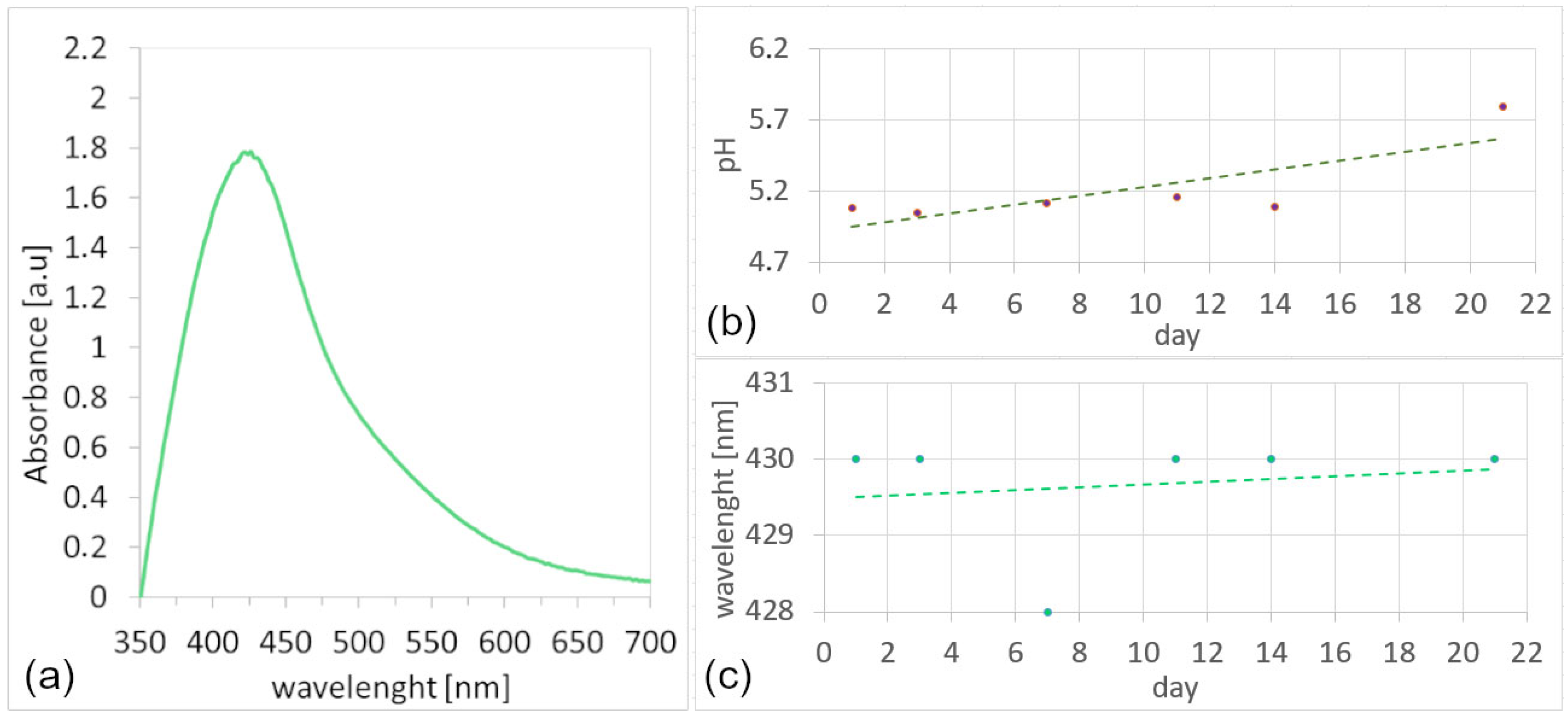 - Sari Gencag, B.; Kahraman, K.; Ekici, L. Green Synthesis of Silver Nanoparticles from Pomegranate Peel and Their Application in PVA-Based Nanofibers for Coating Minced Meat. Sci. Rep. 2025, 15, 17083. [Google Scholar] [CrossRef]