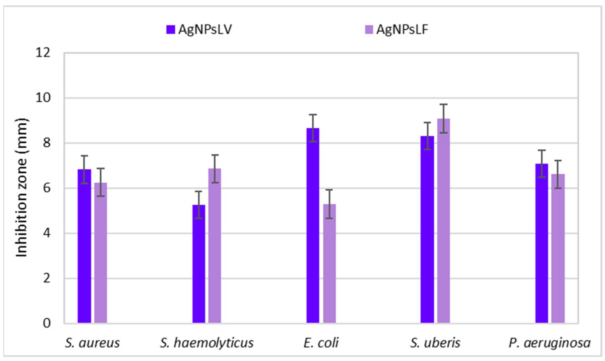 3.1.5. Antibacterial Activity of Colloidal AgNPs