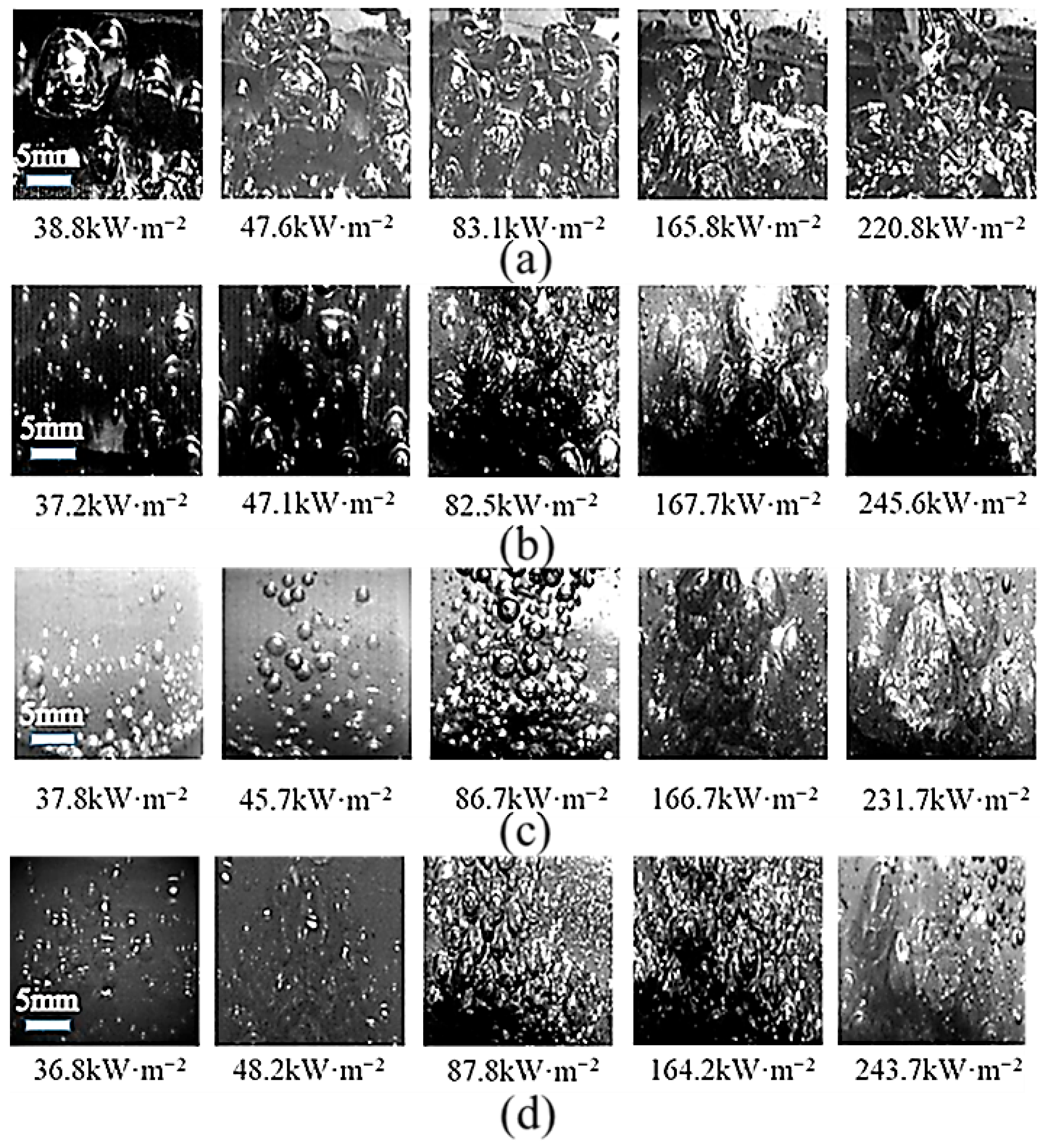 3.2. Pool Boiling Heat Transfer Performance Testing and Analysis