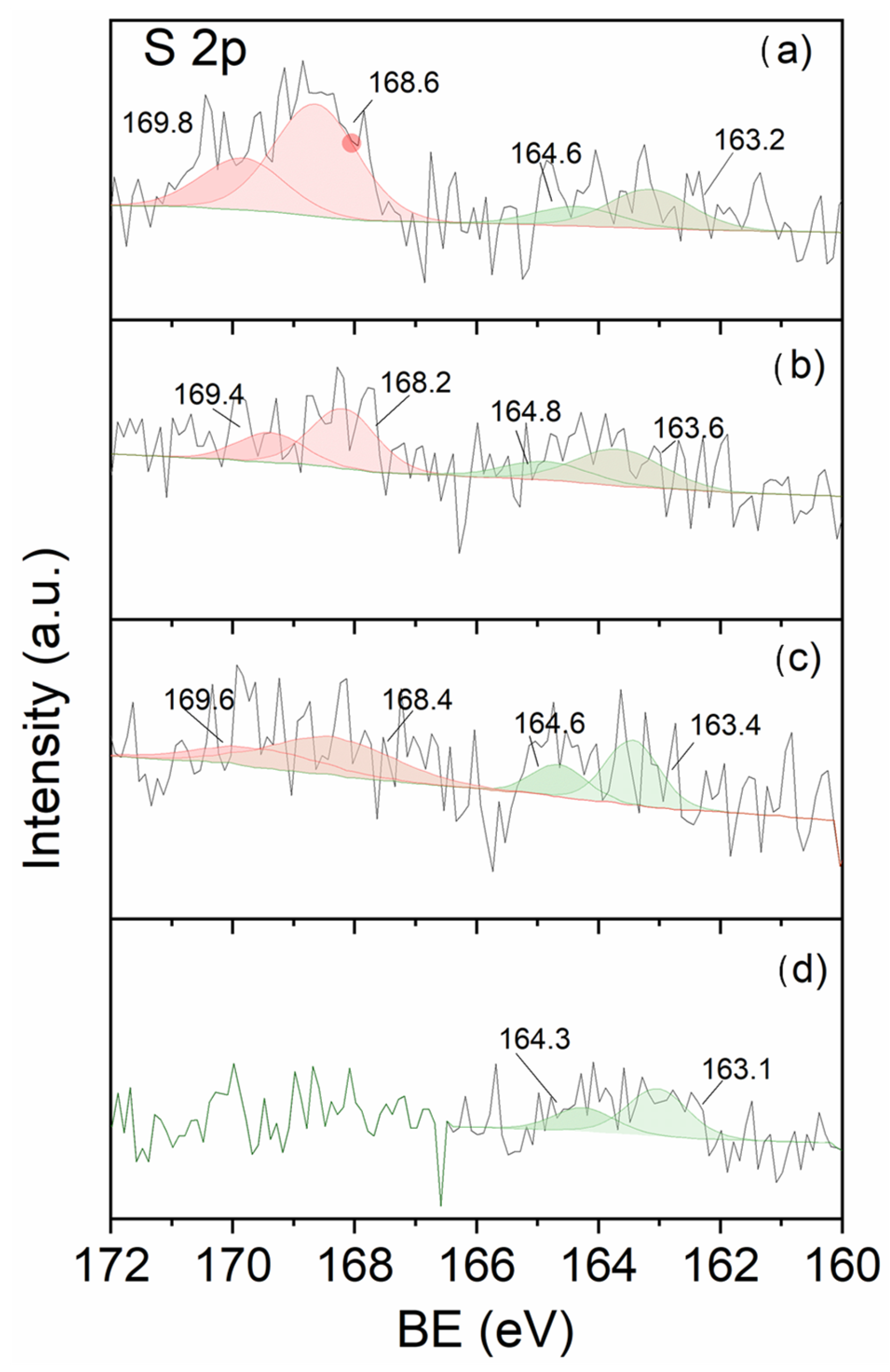 - Wahlqvist, M.; Shchukarev, A. XPS Spectra and Electronic Structure of Group IA Sulfates. J. Electron Spectros. Relat. Phenomena 2007, 156–158, 310–314. [Google Scholar] [CrossRef]