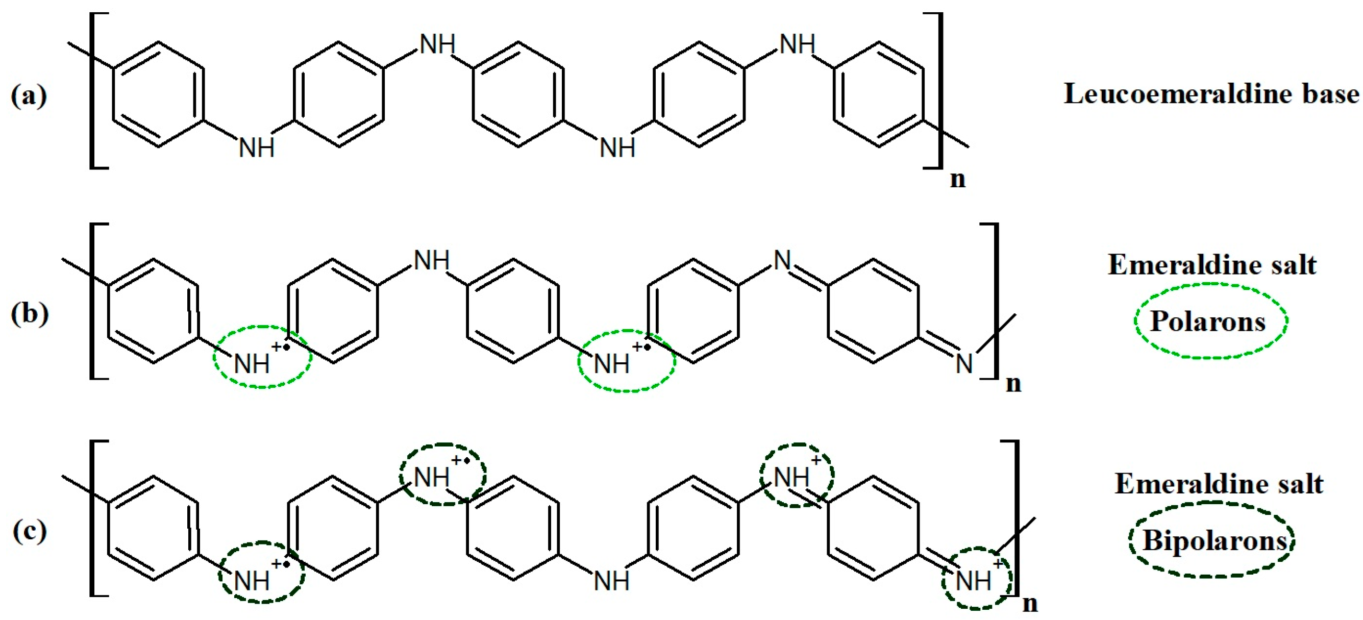 - Blaha, M.; Jindra, M.; Volovhanskyi, O.; Plsek, J.; Mergl, M.; Frank, O.; Kalbac, M. Interactions at the graphene/polyaniline interface: Electron donation from graphene to polyaniline and stabilization of polarons. Adv. Compos. Hybrid Mater. 2025, 8, 381. [Google Scholar] [CrossRef]