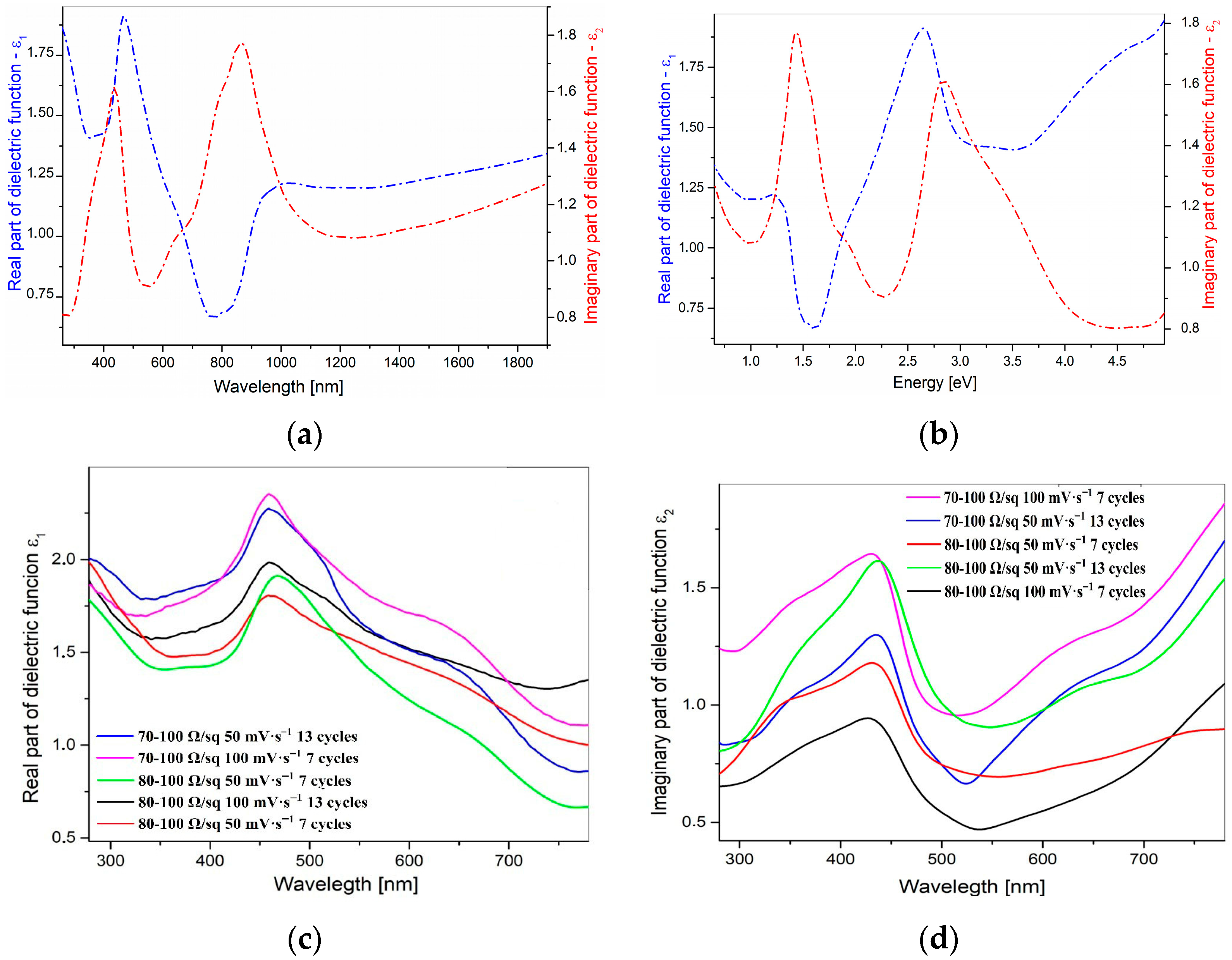 - Al-Attar, H.A.; Al-Alawina, G.H.; Monkman, A.P. Spectroscopic ellipsometry of electrochemically prepared thin film polyaniline. Thin Solid Films 2003, 429, 286–294. [Google Scholar] [CrossRef]