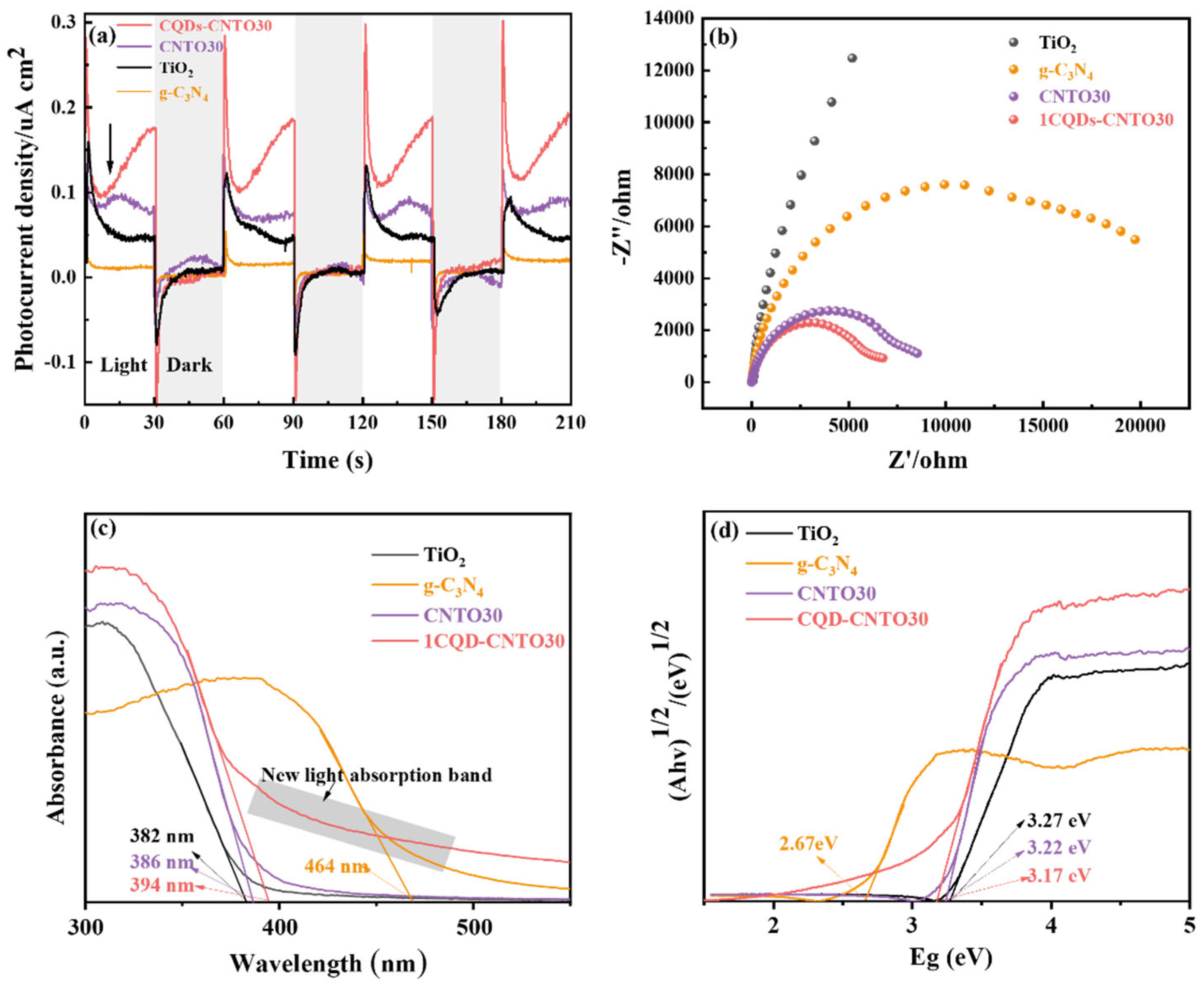 3.3.1. The Effect of g-C3N4 and CQDs Ratio on the Photoatalytic Performance