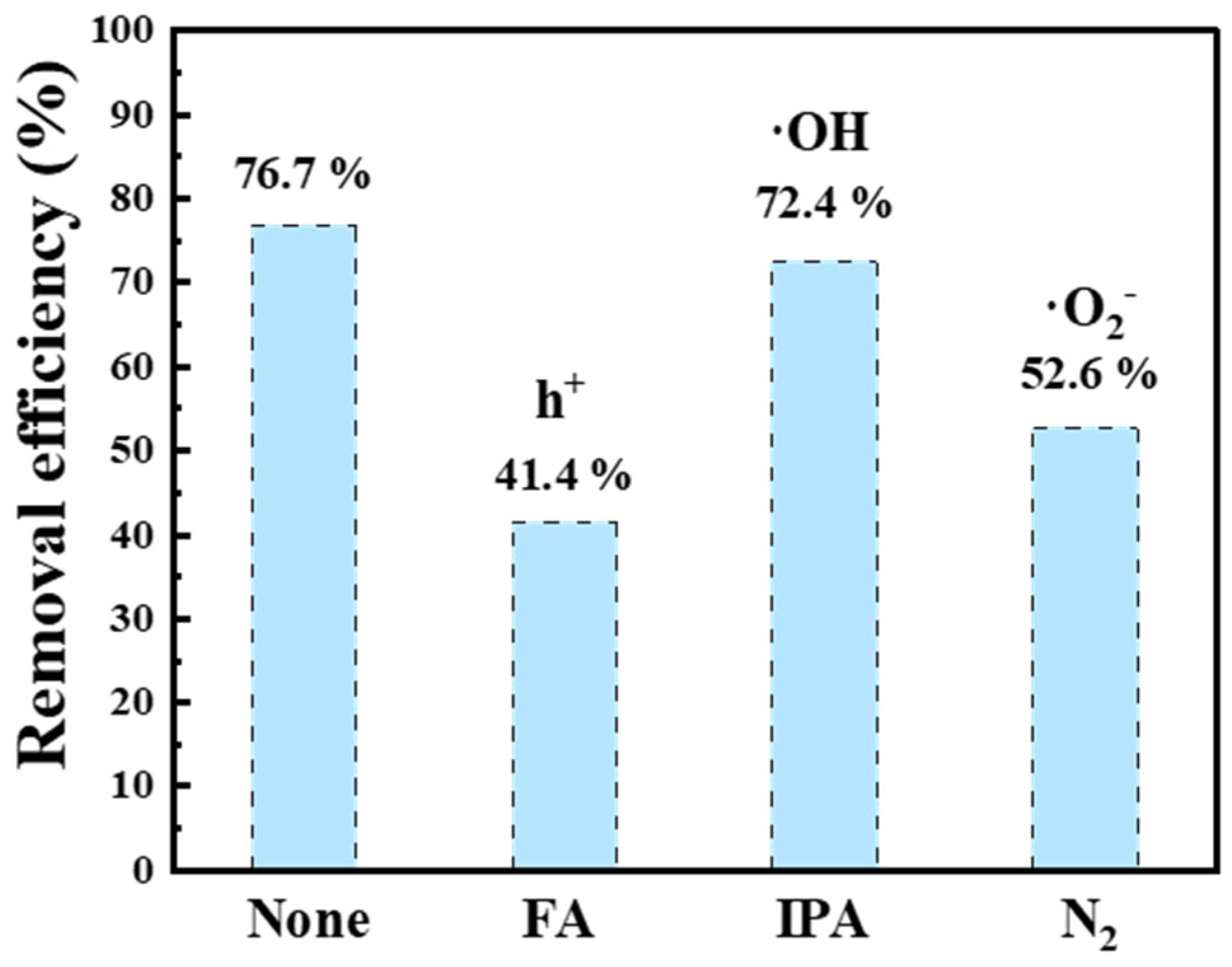 3.3.6. The Mechanism of Photocatalytic Degradation