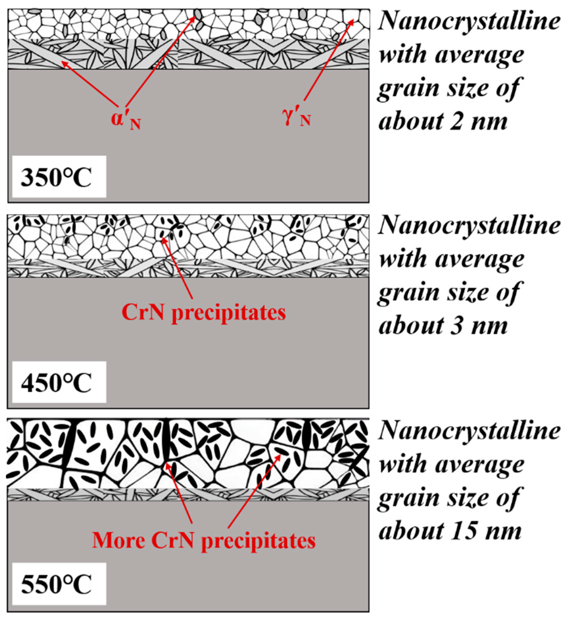 - Yang, X.; Che, H.; Lei, M. Chemical Load-Induced Surface Nanocrystallization in Nitrided Martensitic Stainless Steel. Nanomaterials 2026, 16, 151. [Google Scholar] [CrossRef]