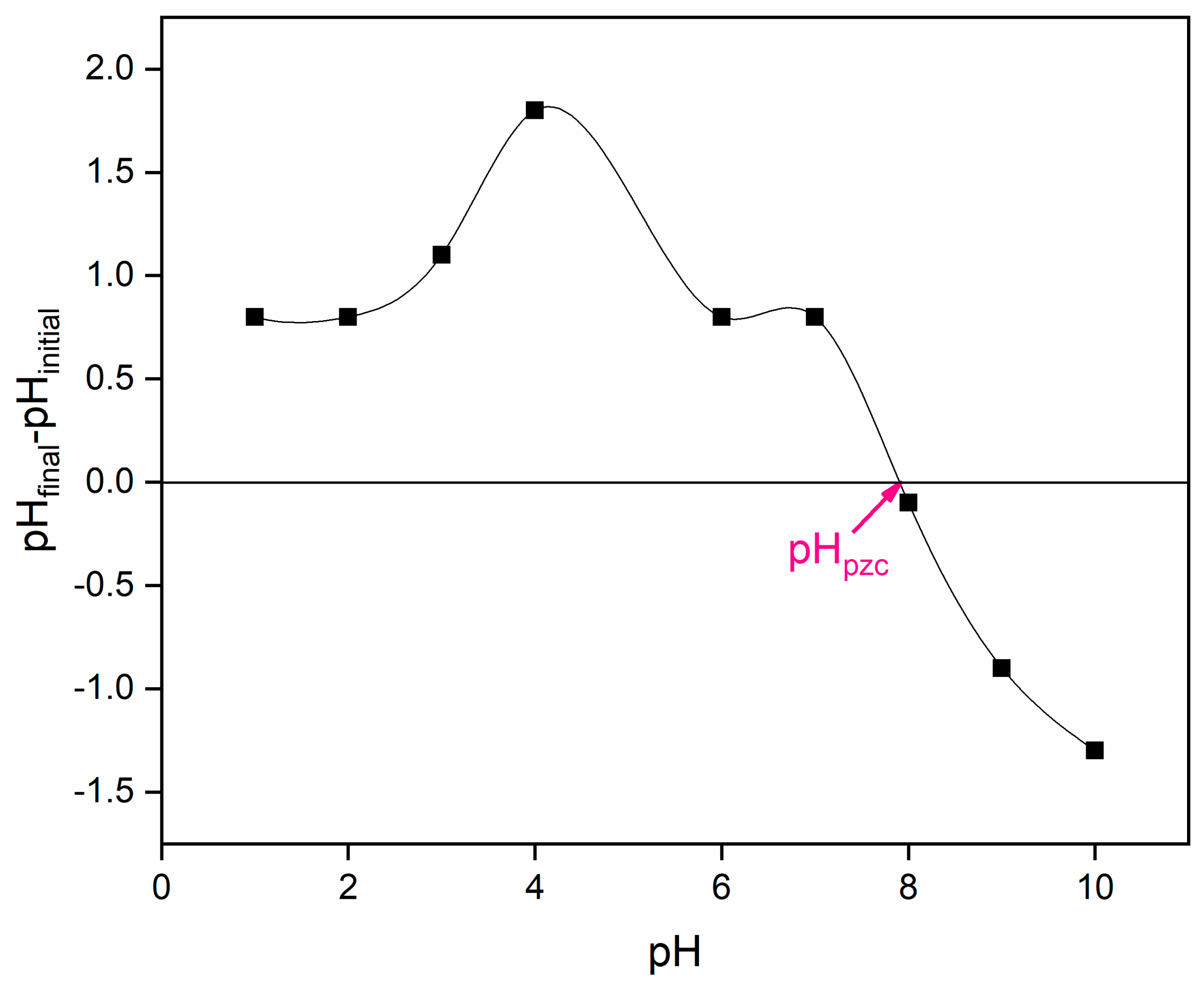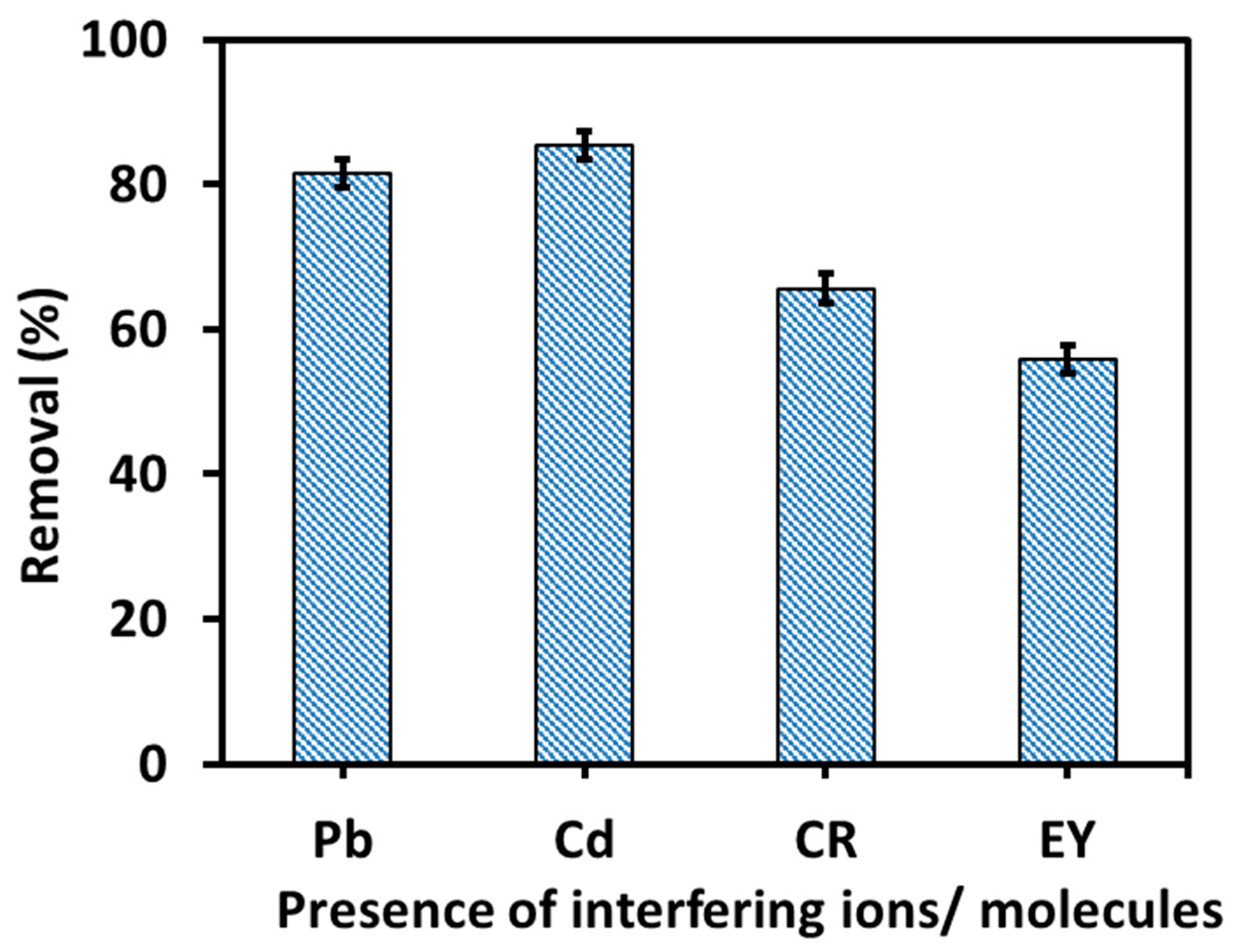 2.5. Determination of Adsorption Capacity and Removal Rate