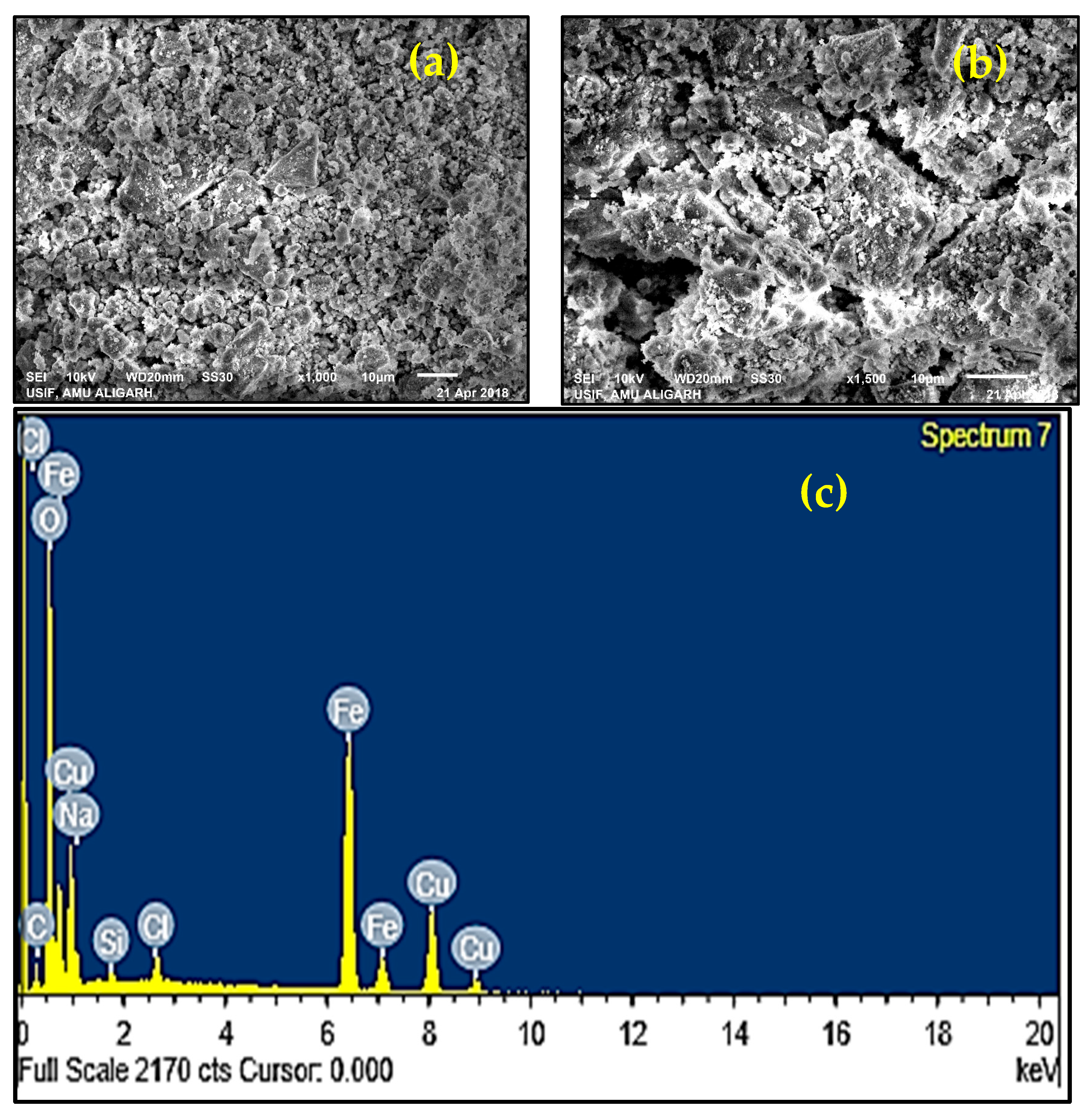 - Narasimharao, K.; Al-Thabaiti, S.; Rajor, H.K.; Mokhtar, M.; Alsheshri, A.; Alfaifi, S.Y.; Siddiqui, S.I.; Abdulla, N.K. Fe3O4@date seeds powder: A sustainable nanocomposite material for wastewater treatment. J. Mater. Res. Technol. 2022, 18, 3581–3597. [Google Scholar] [CrossRef]