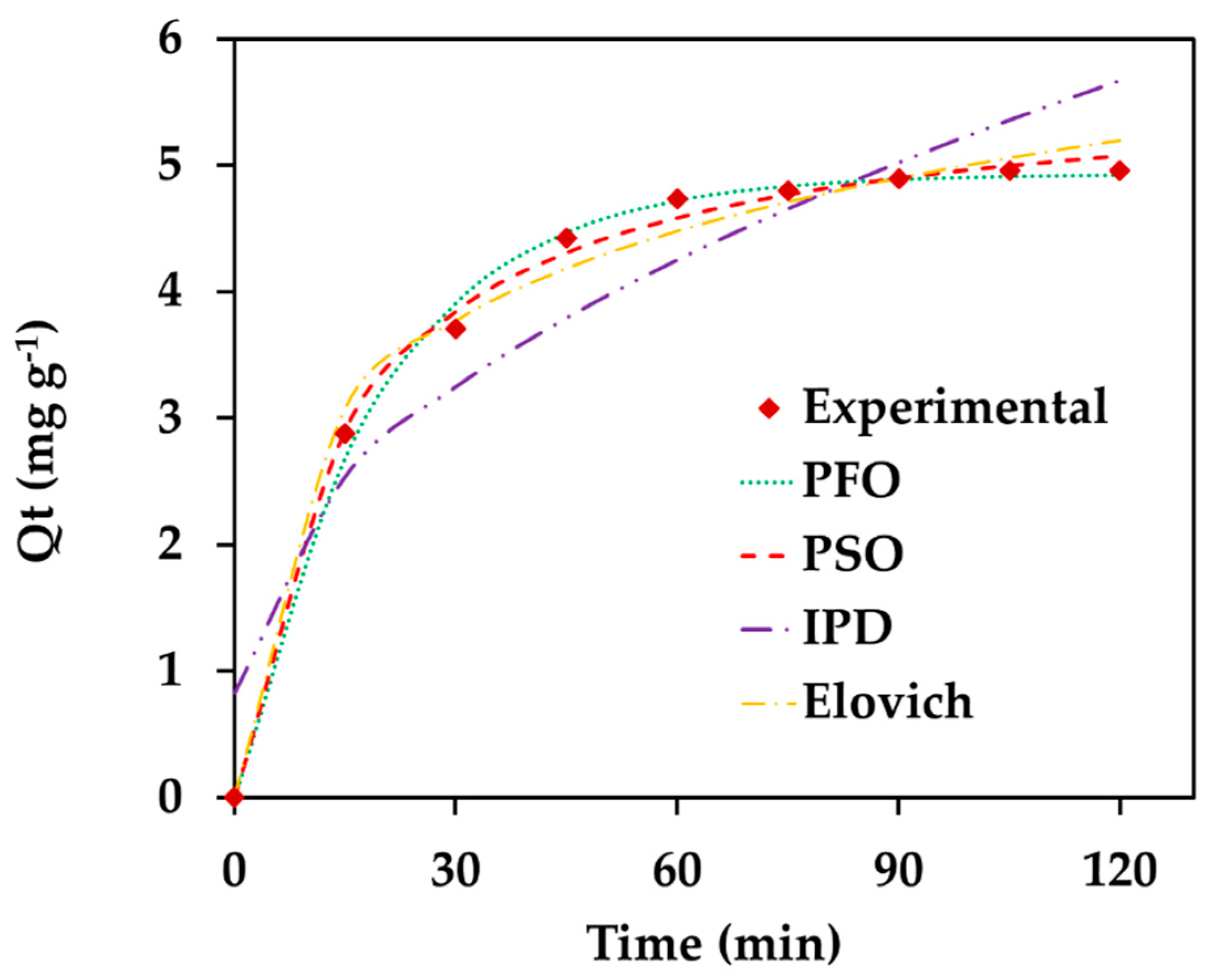 | Qe (mg g−1) | ~4.90 | ~4.80 | ~4.60 | |
