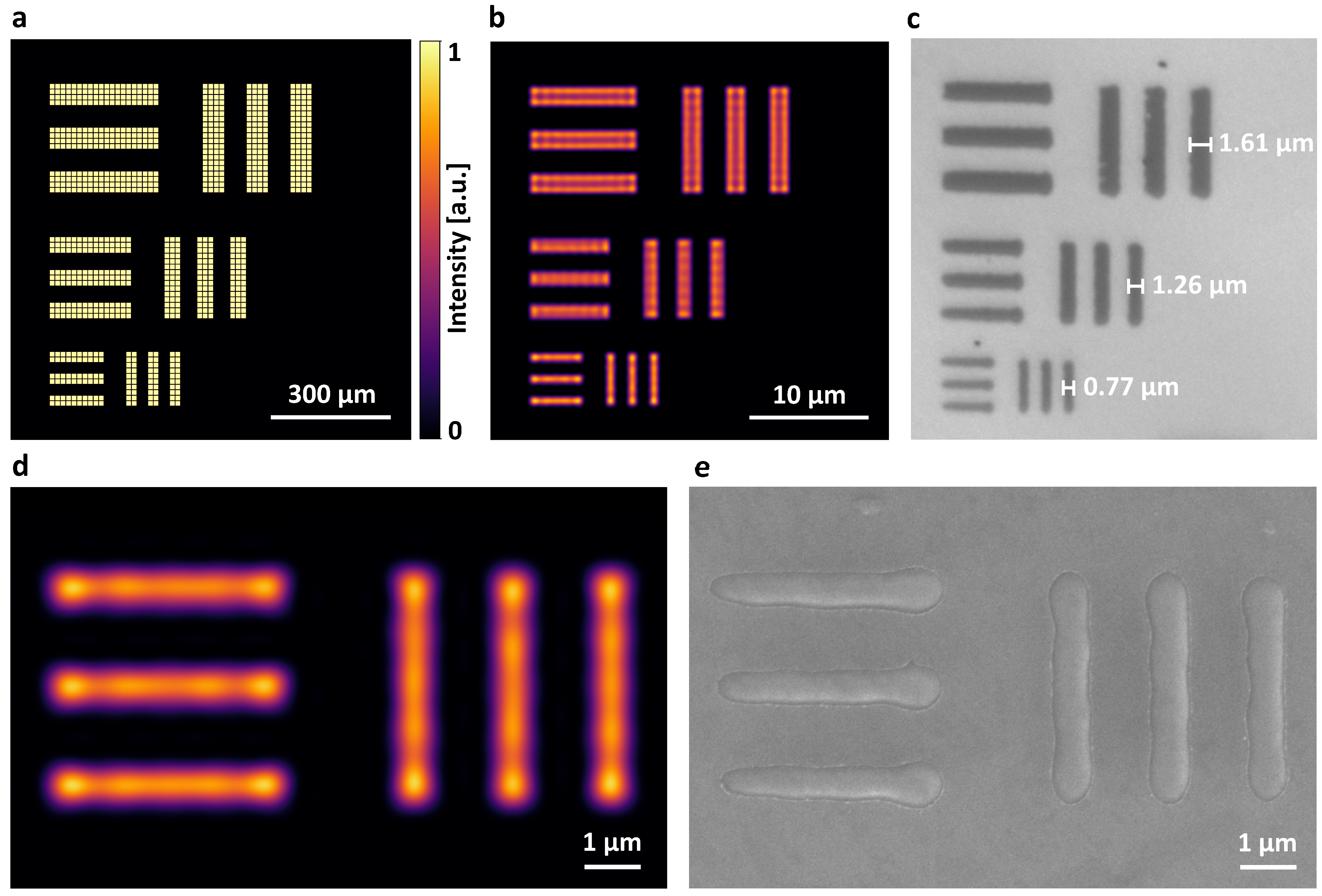 - Kang, M.; Han, C.; Jeon, H. Submicrometer-scale pattern generation via maskless digital photolithography. Optica 2020, 7, 1788–1795. [Google Scholar] [CrossRef]