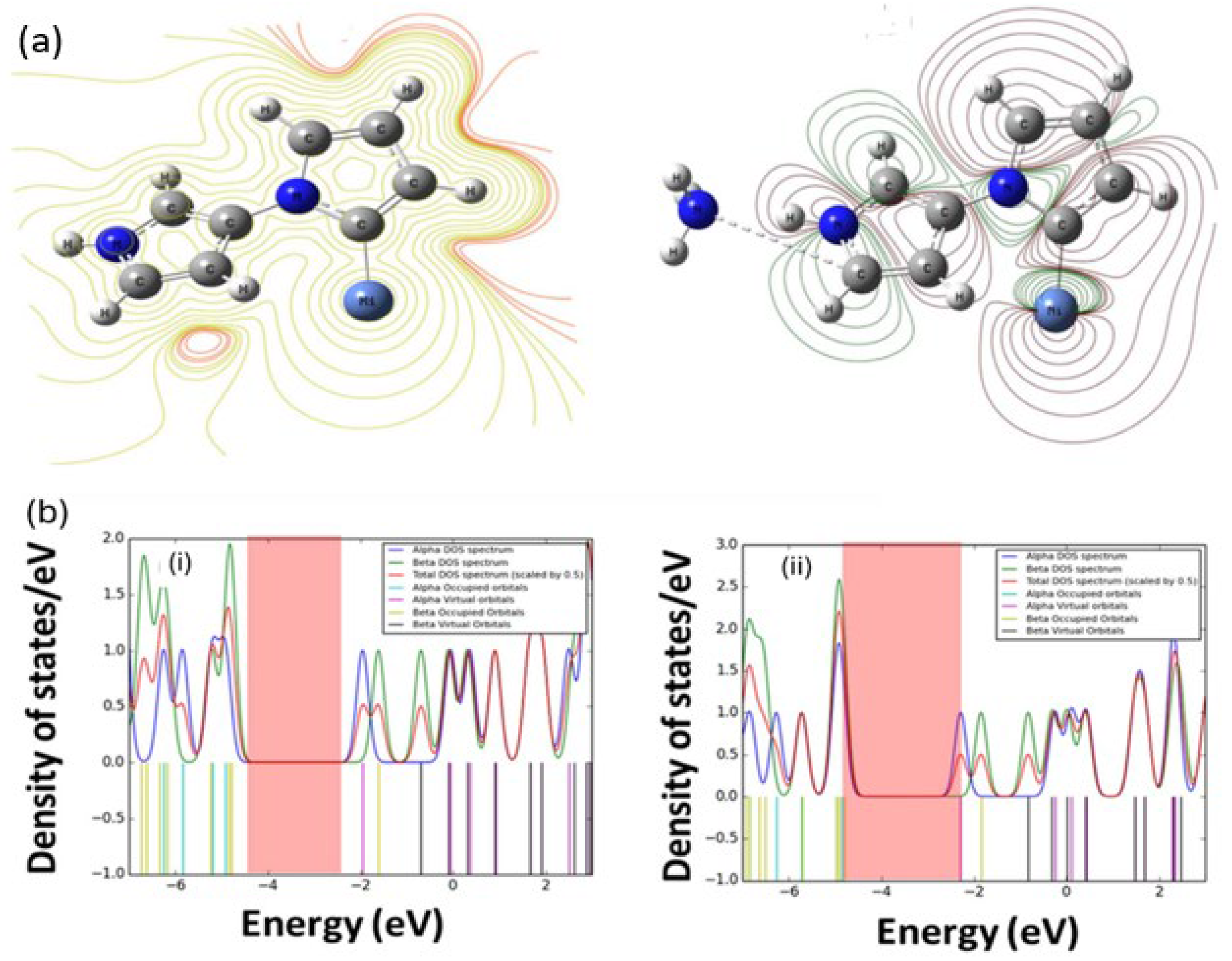 | PPy (neutral → polaron PPy+) | Electronic conductivity | Band gap reduction from 3.41 to 2.91 eV | Insulator-to-conductor transition; planarization and enhanced π-conjugation | [2] |