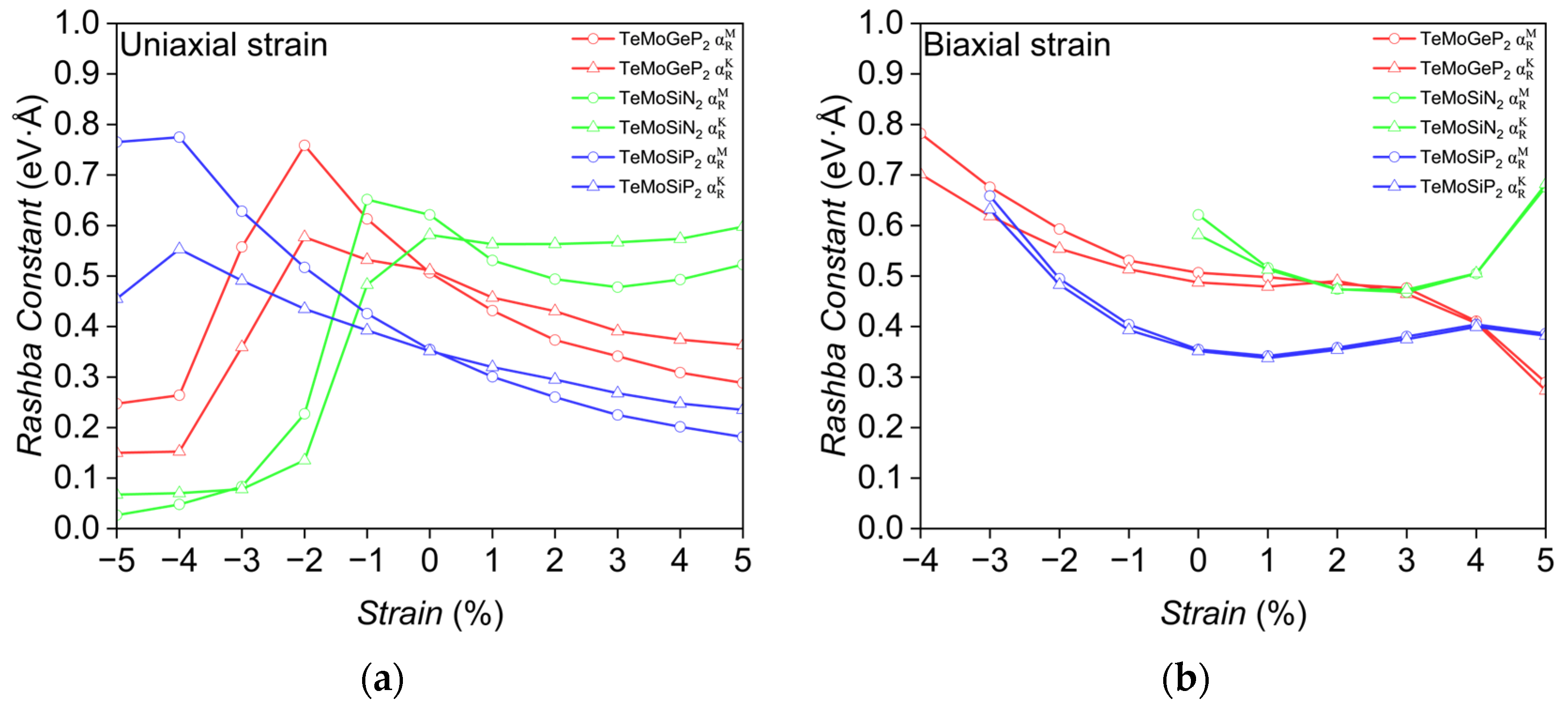 - Su, J.; Wang, X.; Shao, C.; Guo, Y.; Xian, L. Strain-Controlled Rashba Spin-Orbit Coupling Effect in SnS and SnSe Monolayers. Mater. Des. 2021, 209, 110005. [Google Scholar] [CrossRef]