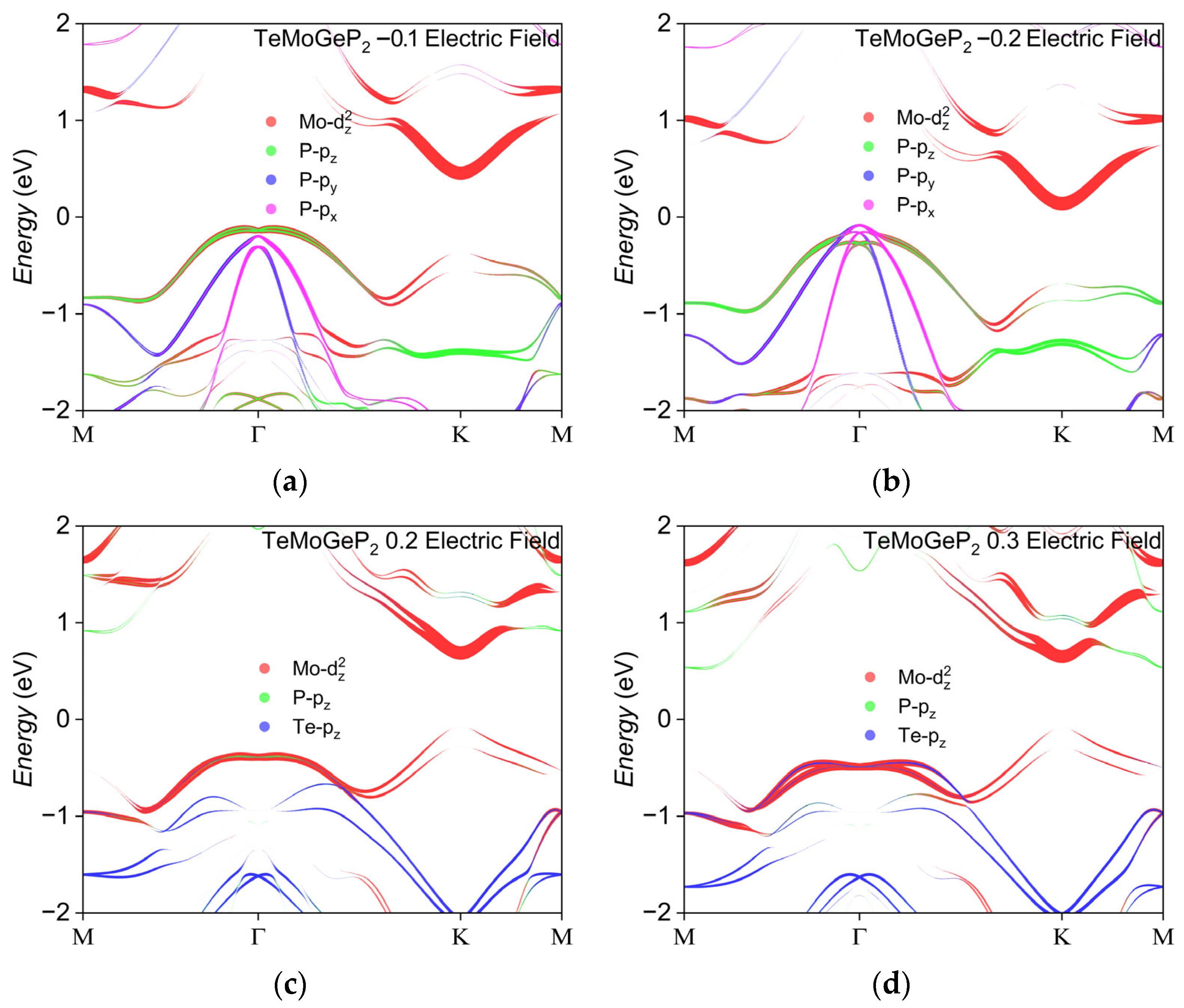 - Affandi, Y.; Ulil Absor, M.A. Electric Field-Induced Anisotropic Rashba Splitting in Two-Dimensional Tungsten Dichalcogenides WX2 (X: S, Se, Te): A First-Principles Study. Physica E 2019, 114, 113611. [Google Scholar] [CrossRef]