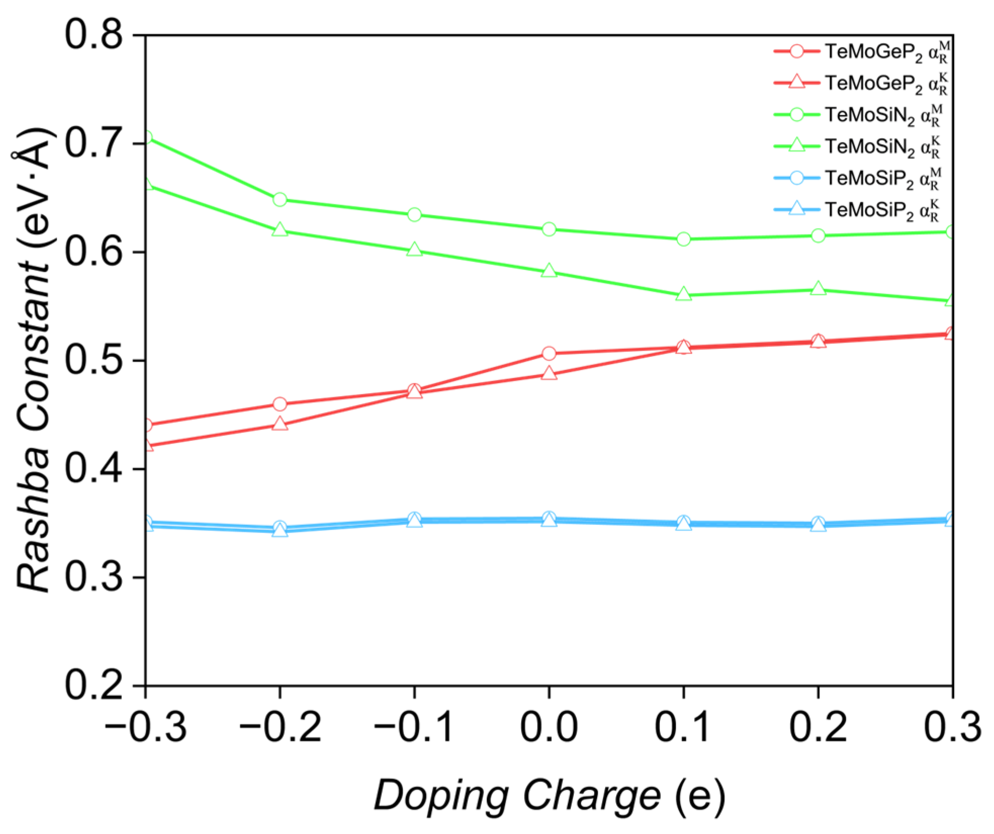 - Chen, J.; Wu, K.; Ma, H.; Hu, W.; Yang, J. Tunable Rashba Spin Splitting in Janus Transition-Metal Dichalcogenide Monolayers via Charge Doping. RSC Adv. 2020, 10, 6388–6394. [Google Scholar] [CrossRef] [PubMed]