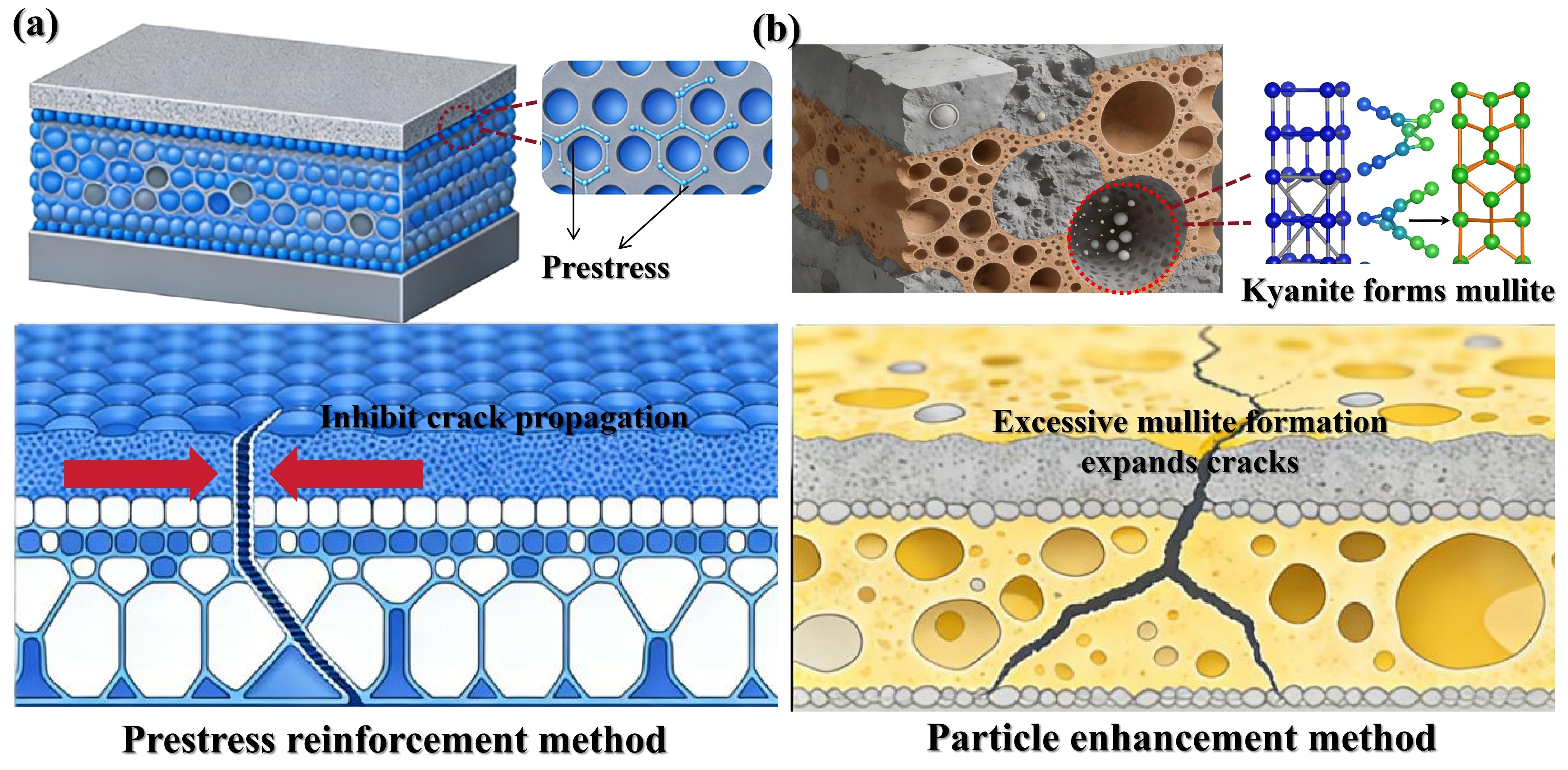 - The prestress reinforcement method is a simple, cost-effective, and effective approach for the fabrication of kyanite-reinforced Al2O3 ceramics with high strength and high fracture toughness.