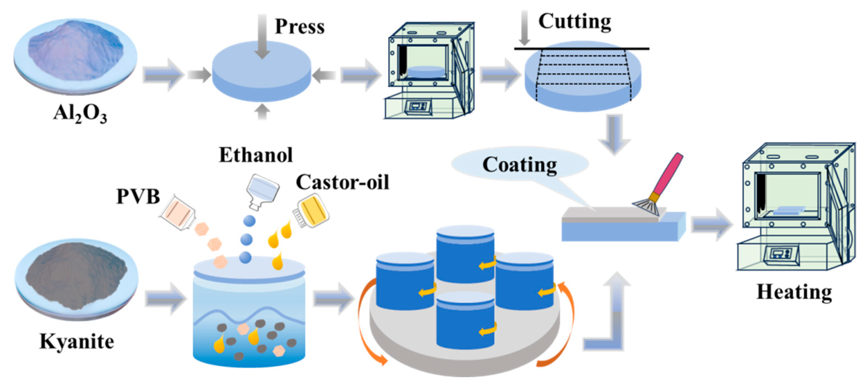 - The strengthening mechanism of C-Al2O3 consists of the pinning effect. However, the higher the content of kyanite, the higher the porosity and the lower the strength of P-Al2O3.