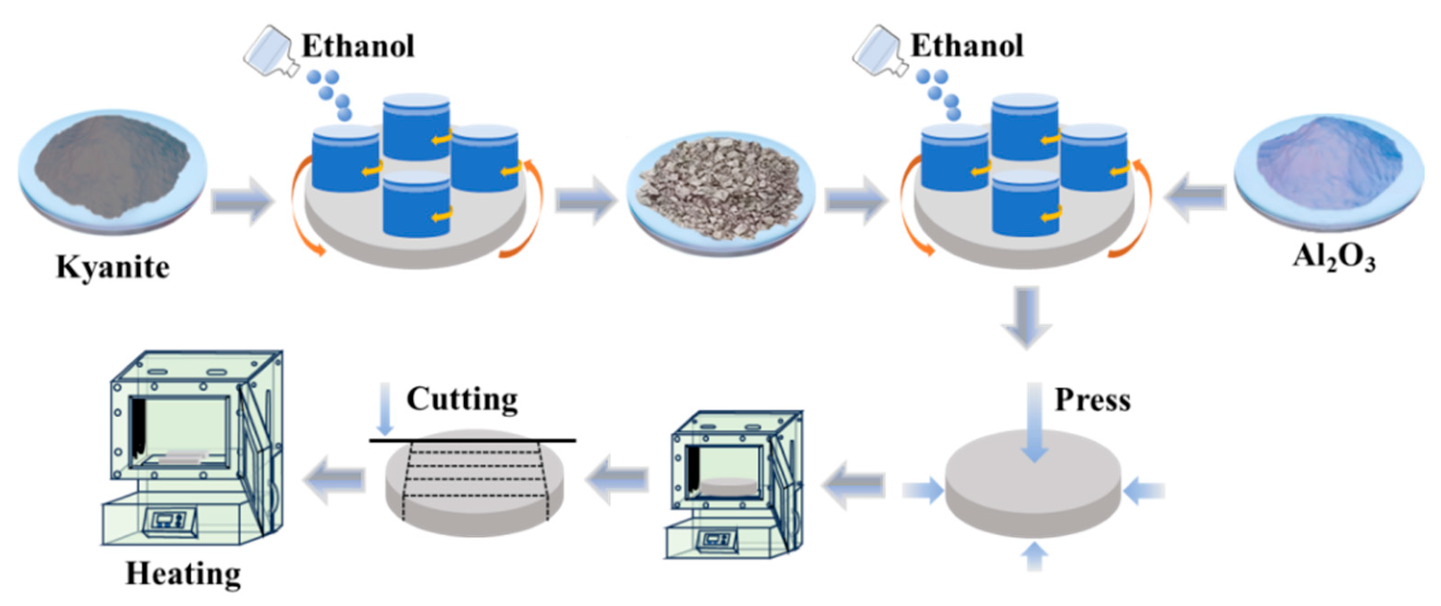 - Wu, H.L.; Li, H.; Cao, D.; Qiu, Y.; Wan, D.; Bao, Y. The Effects of Compressive Residual Stress on Properties of Kyanite-Coated Zirconia Toughened Alumina Ceramics. Materials 2023, 16, 6071. [Google Scholar] [CrossRef]