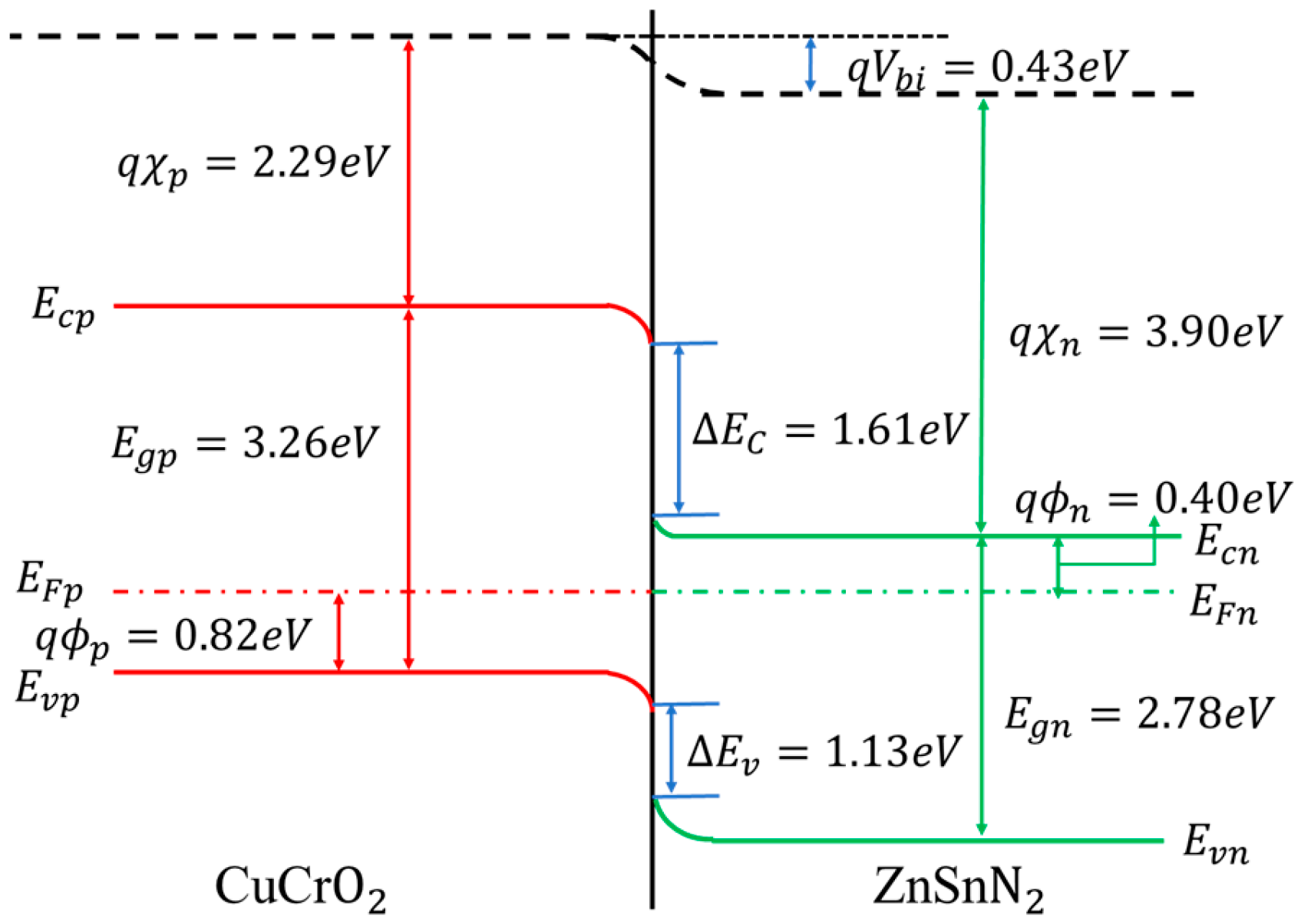 - Ghadhab, B.N.M.; Bahrami, A. A Comprehensive Study on ZnSnN2-Based Solar Cells with Different Cu-Based Delafossite as Buffer Layers: A Numerical Analysis Using Scaps-1d. Sol. Energy Mater. Sol. Cells 2025, 289, 113675. [Google Scholar] [CrossRef]