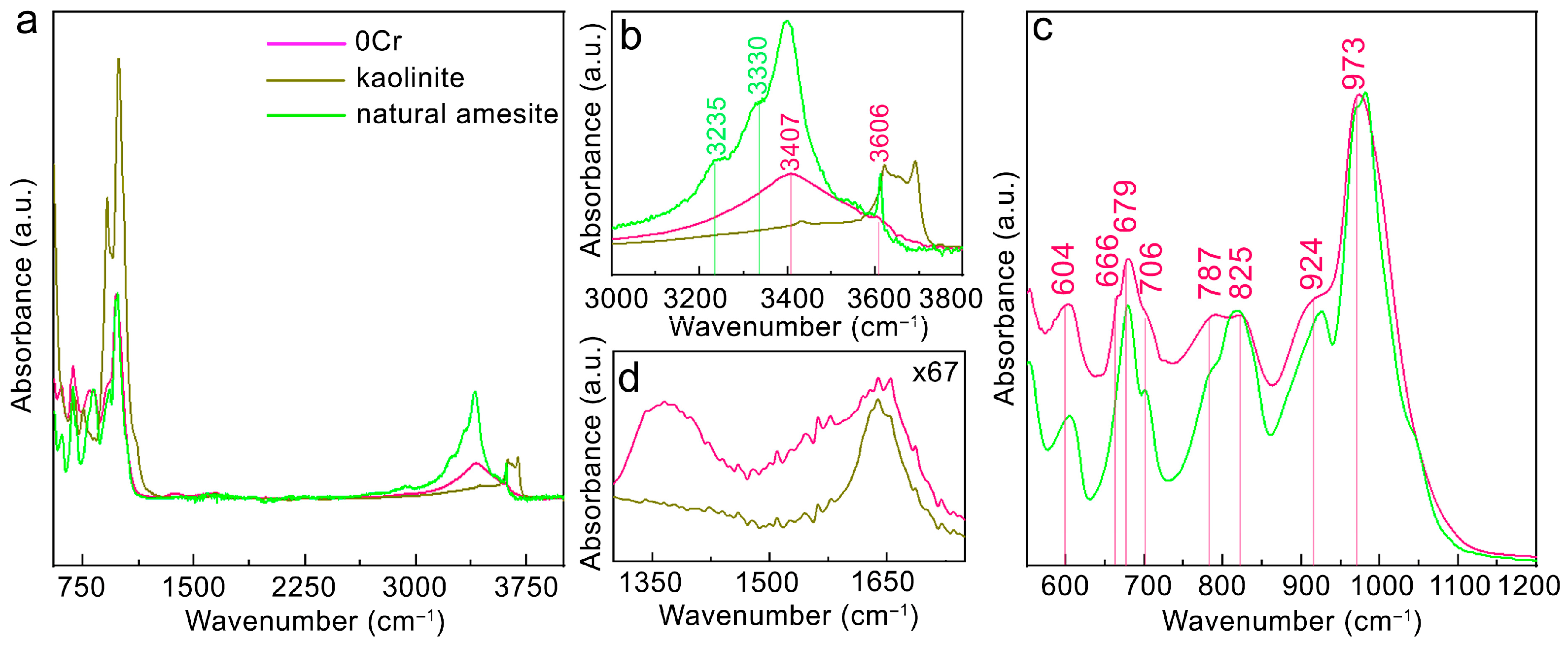 - Balan, E.; Allard, T.; Morin, G.; Calas, G. Incorporation of Cr3+ in Dickite: A Spectroscopic Study. Phys. Chem. Miner. 2002, 29, 273–279. [Google Scholar] [CrossRef]