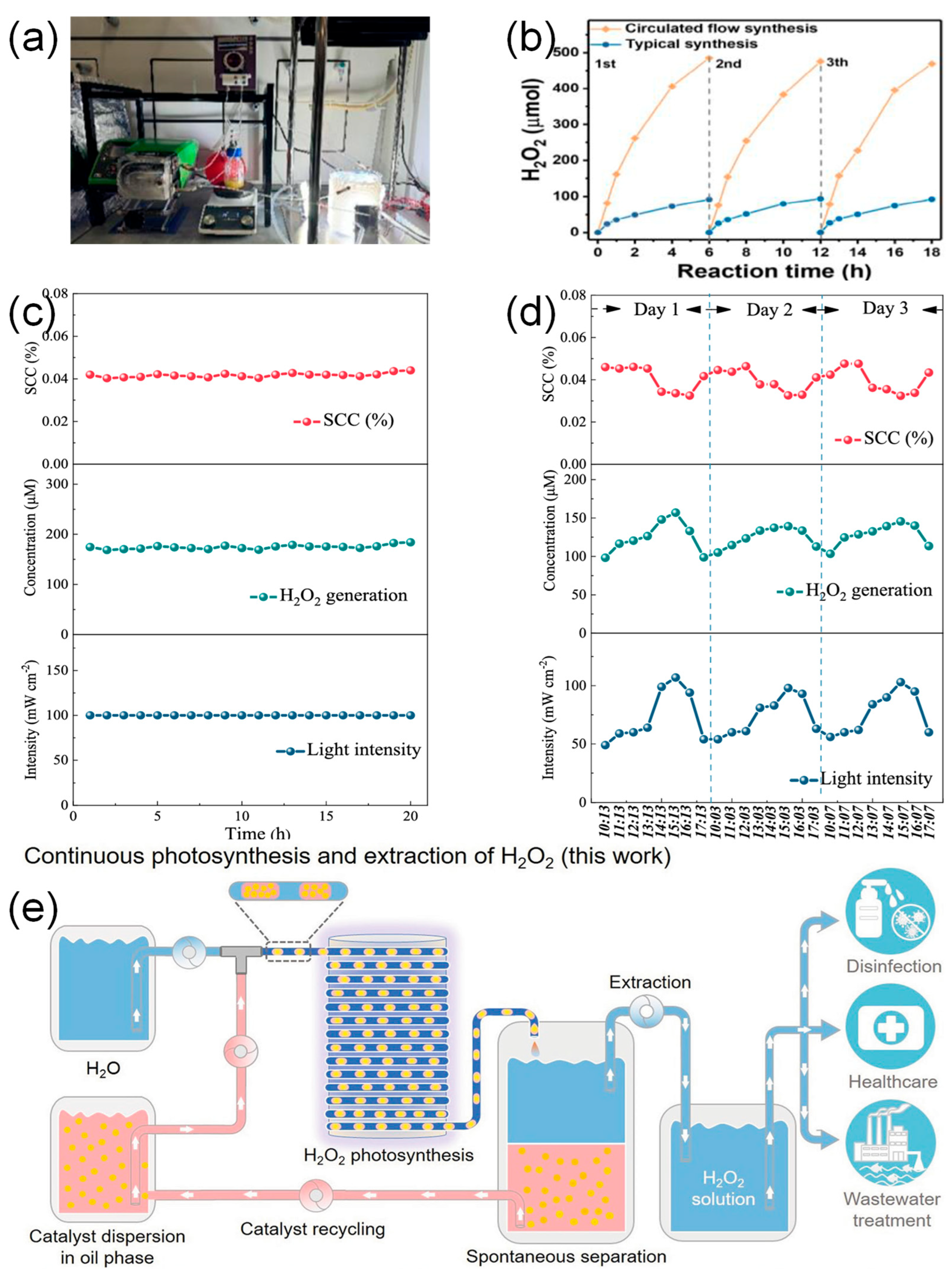 - Jiang, Z.; Li, C.; Qi, F.; Wang, Z.; Liu, Y.; Li, F.; Wang, H.; Bian, Z.; Zhu, M.; Kumirska, J.; et al. A Review on Photocatalytic Hydrogen Peroxide Production from Oxygen: Material Design, Mechanisms, and Applications. ACS Appl. Mater. Interfaces 2025, 17, 42–66. [Google Scholar] [CrossRef]