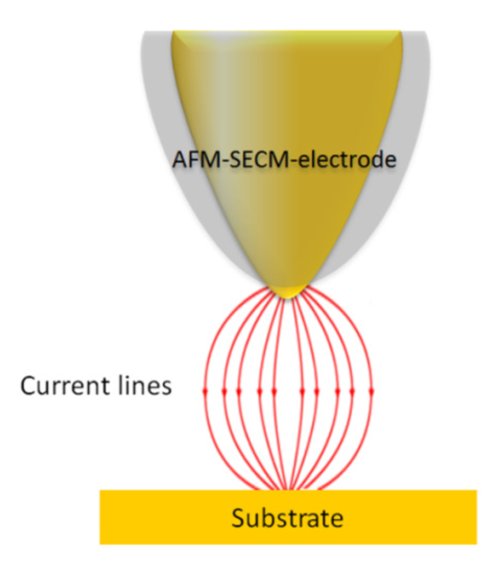 Schematic representation of the electric field between the AFM-SECM-electrode and the substrate.