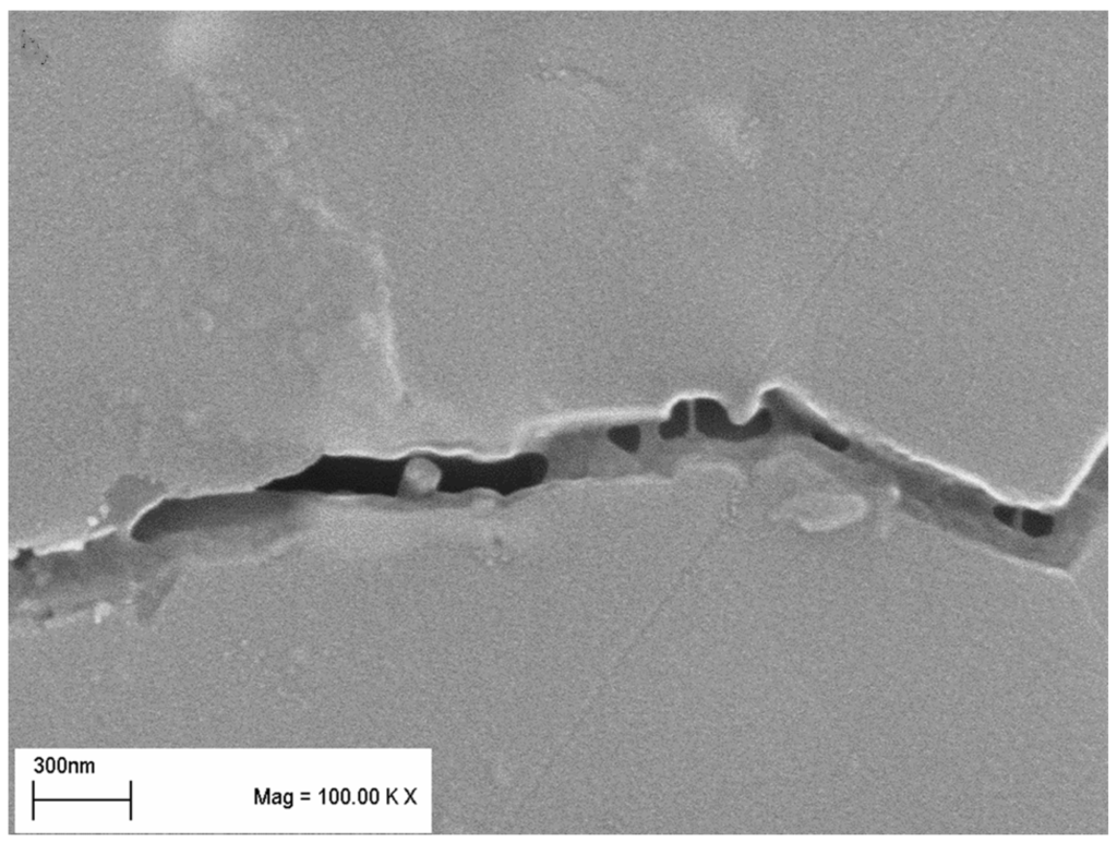 - Jiao, S.; Jenkins, M.L. A quantitative analysis of crack-interface interactions in alumina-based nanocomposites. Phil. Mag. A 1998, 78, 507–522. [Google Scholar] [CrossRef]