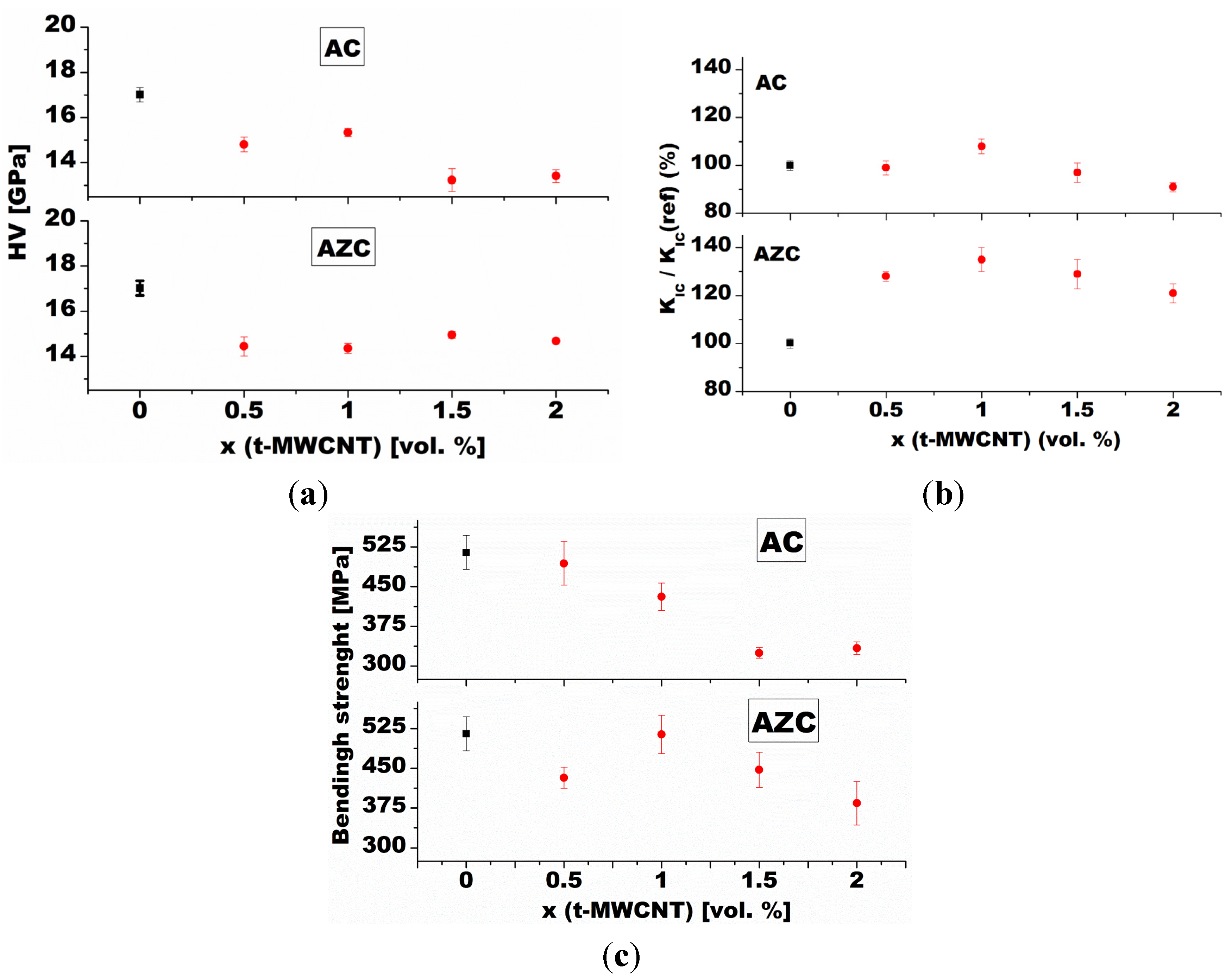 - Michálek, M.; Sedláček, J.; Parchovianský, M.; Michálková, M.; Galusek, D. Mechanical properties and electrical conductivity of alumina/MWCNT and alumina/zirconia/MWCNT composites. Ceram. Int. 2014, 40, 1289–1295. [Google Scholar] [CrossRef]