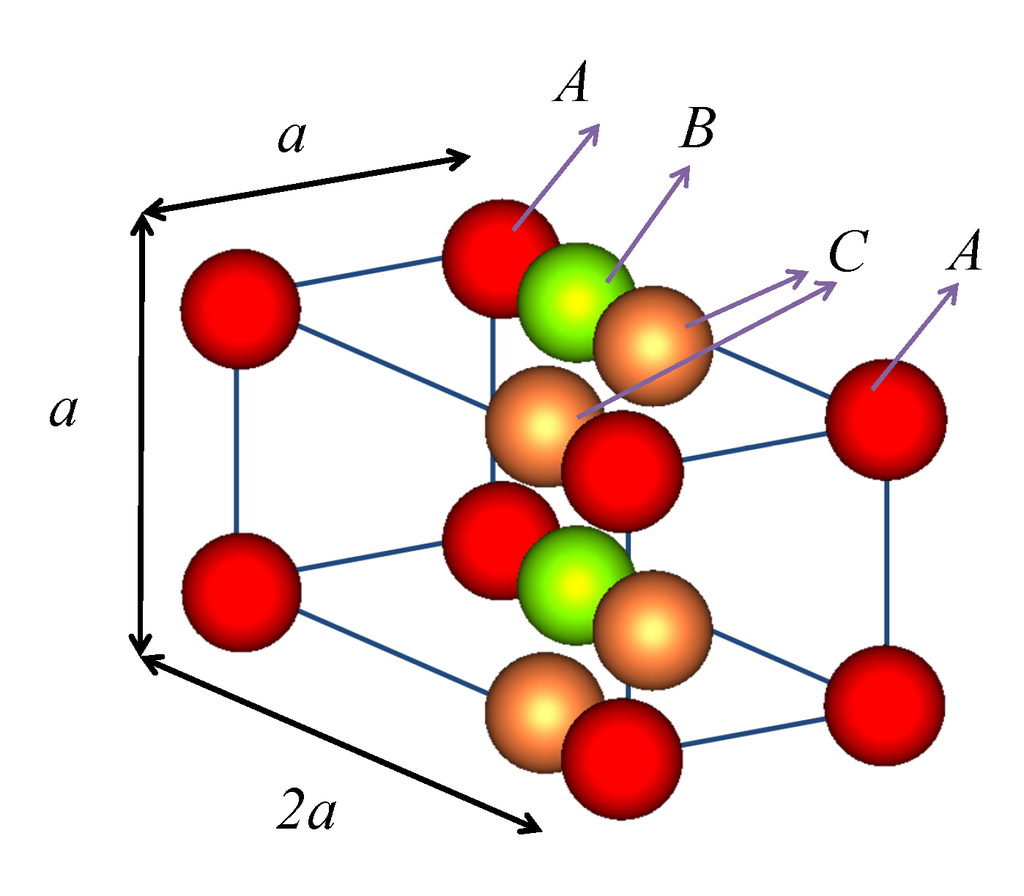 Unit cell of 3D PC with one-way photonic band gaps: monoclinic crystal consisting of four non-primitive planes of spheres parallel to the (001) surface at positions (0, 0, 0), (0, 0, a/2), (0, 0, a), and (−0.3a, 0, 3a/2).